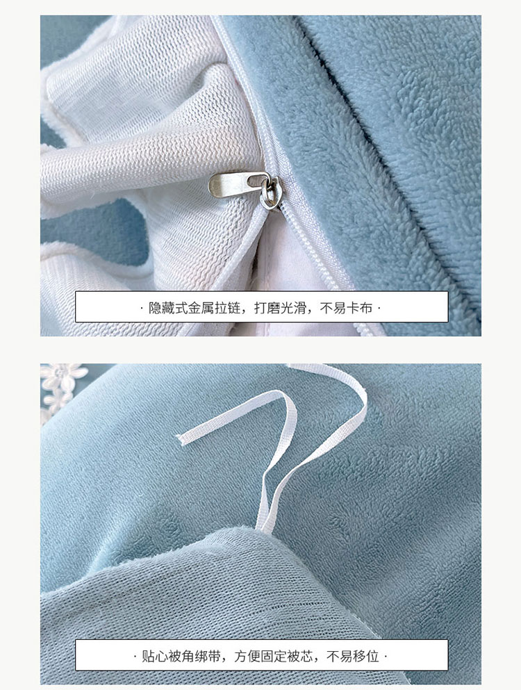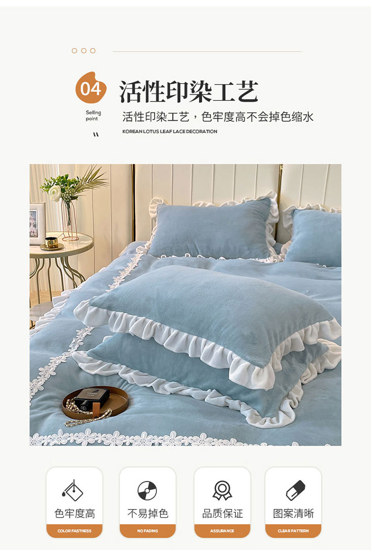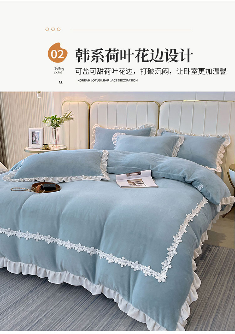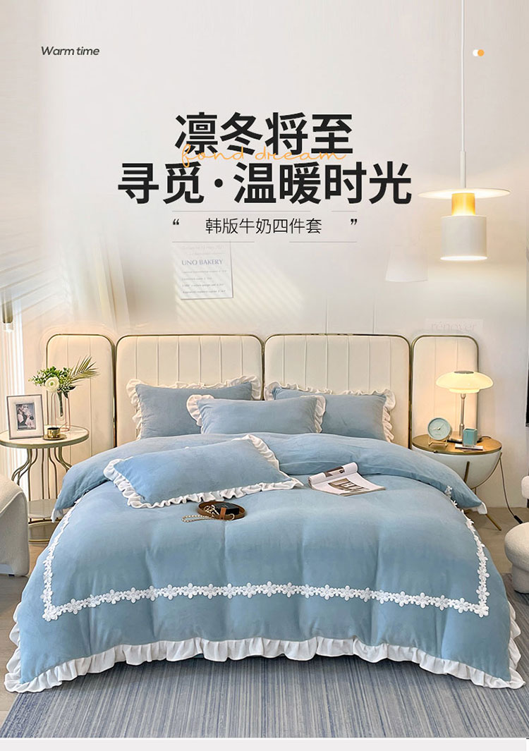2023新款韩版水溶花边牛奶绒四件套--安娜系列 安娜-天空蓝