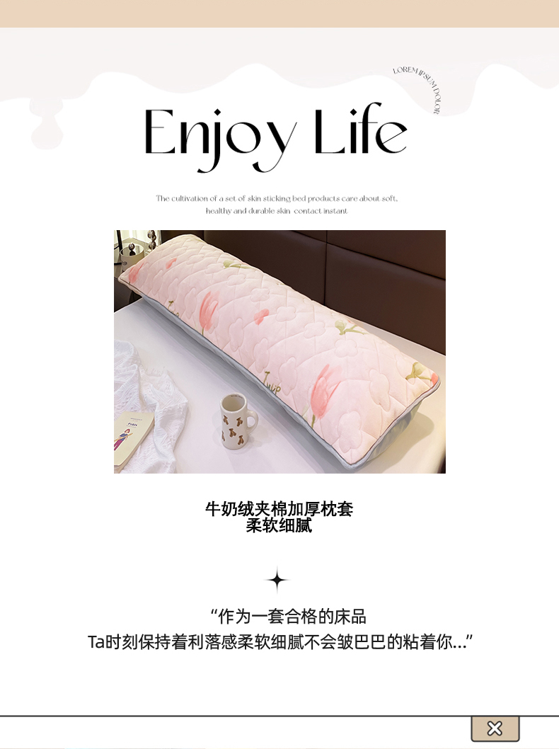 梦舒羽 2025新款牛奶绒夹棉长枕套宿舍双人枕芯套 郁金香