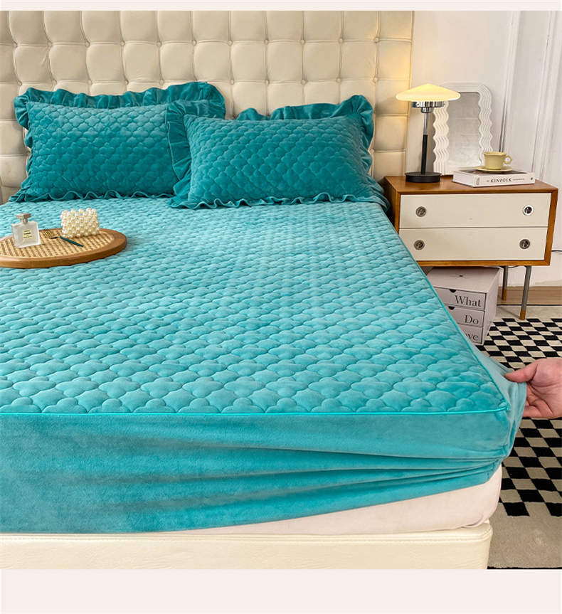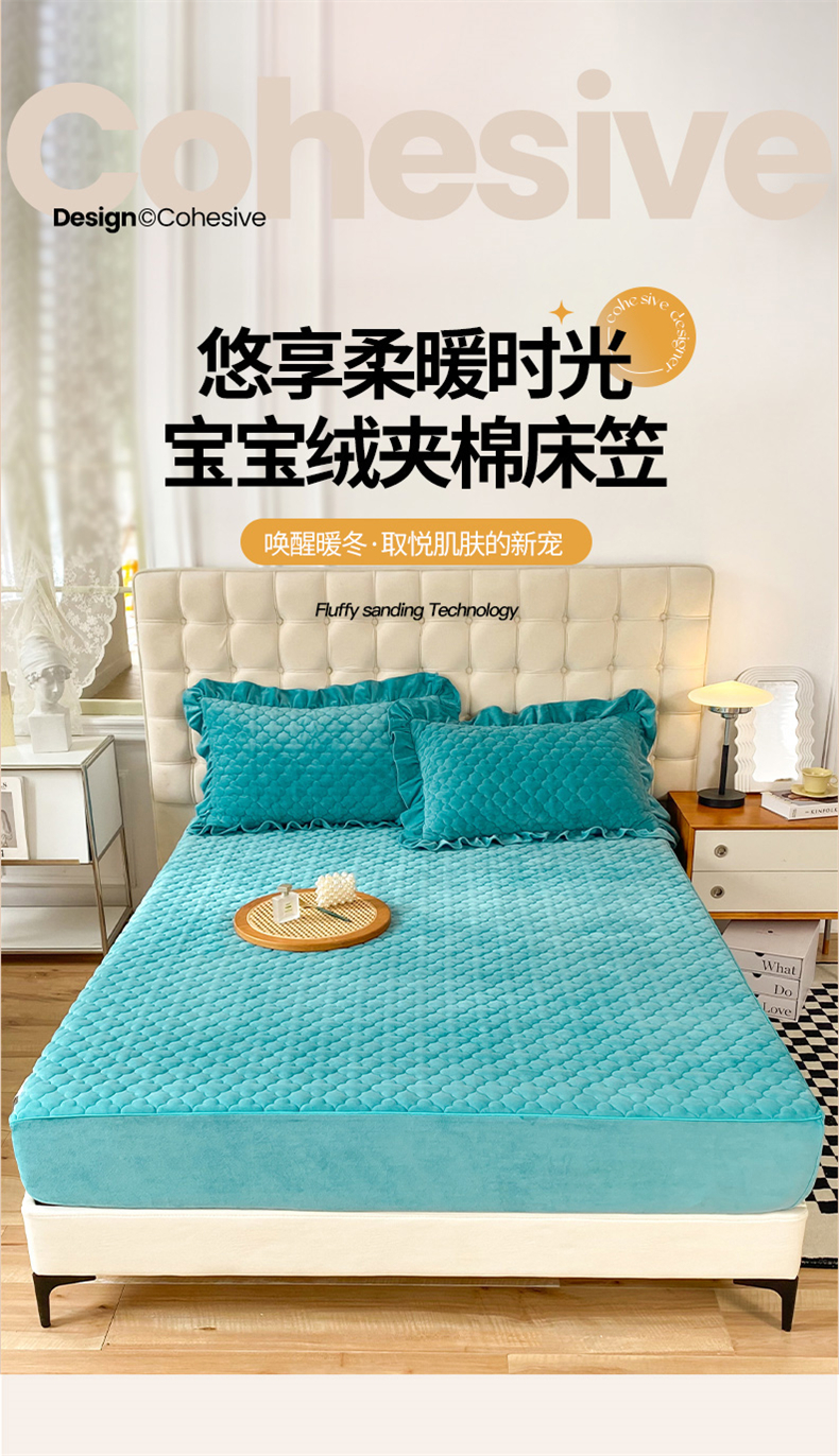 7V 2023新款宝宝绒床笠牛奶绒360度全包围床笠 湖蓝