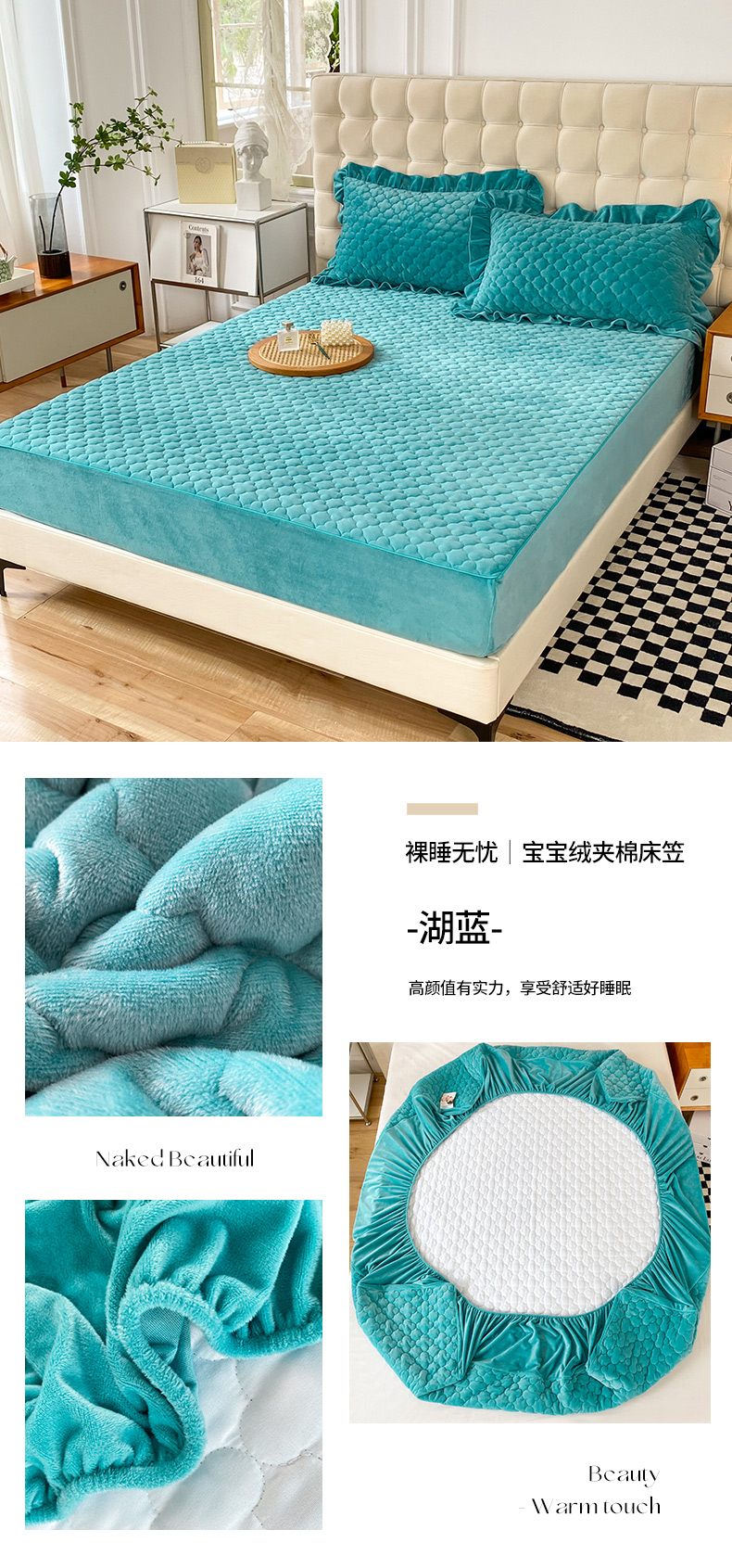 商品名称:7V 2023新款宝宝绒床笠牛奶绒360度全包围床笠 湖蓝
