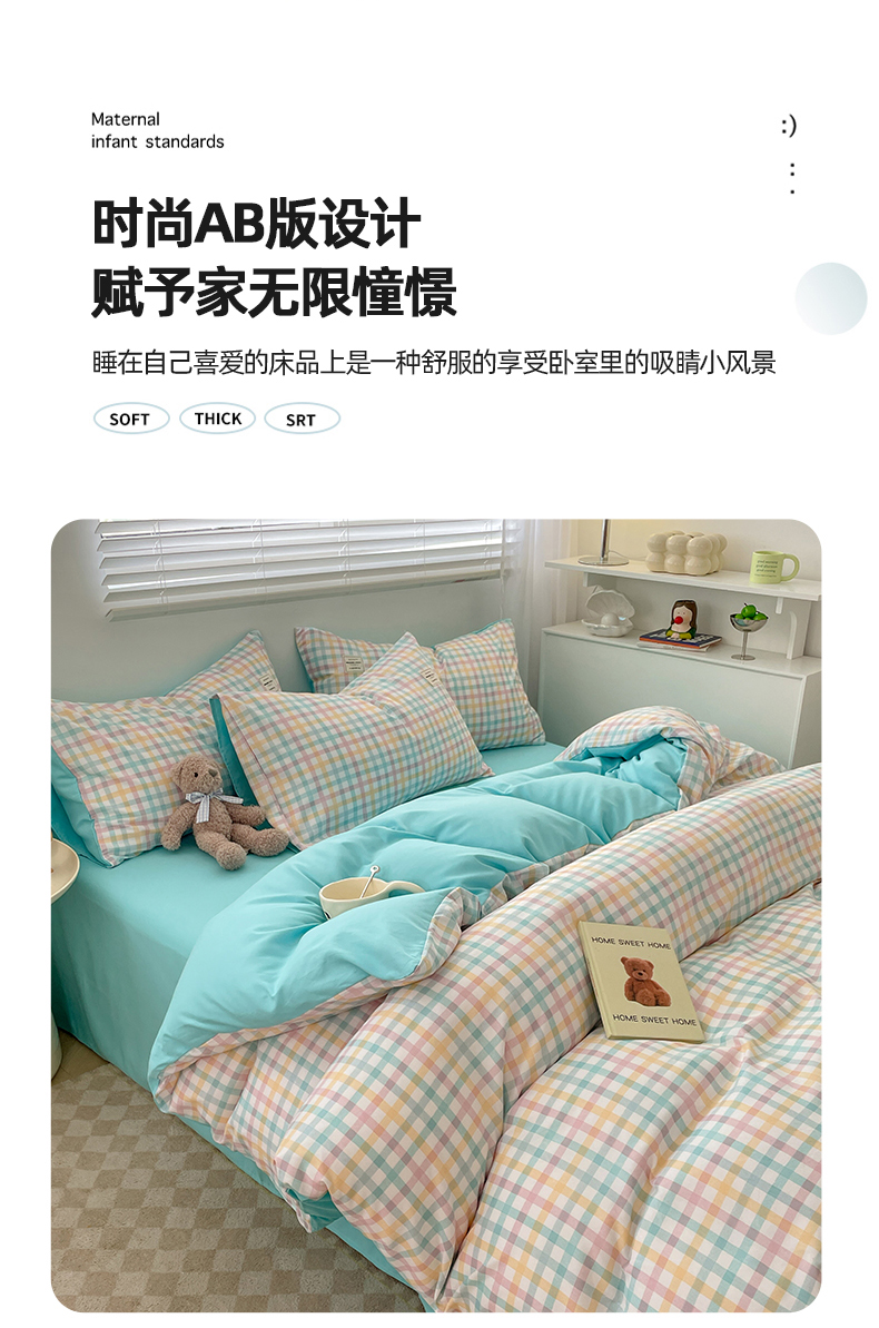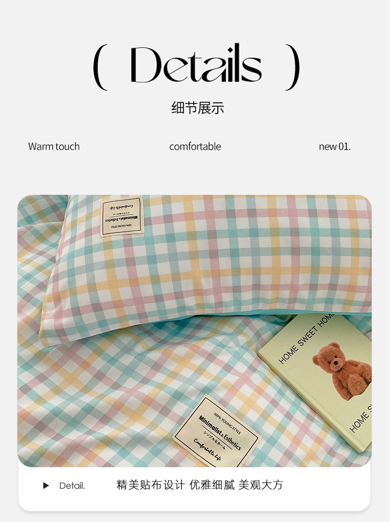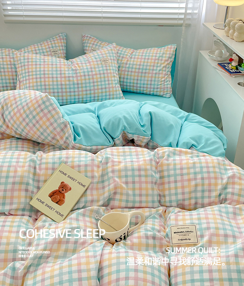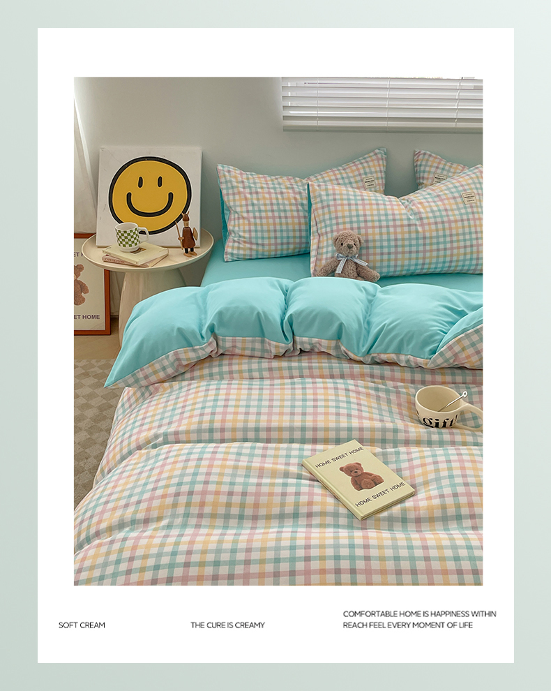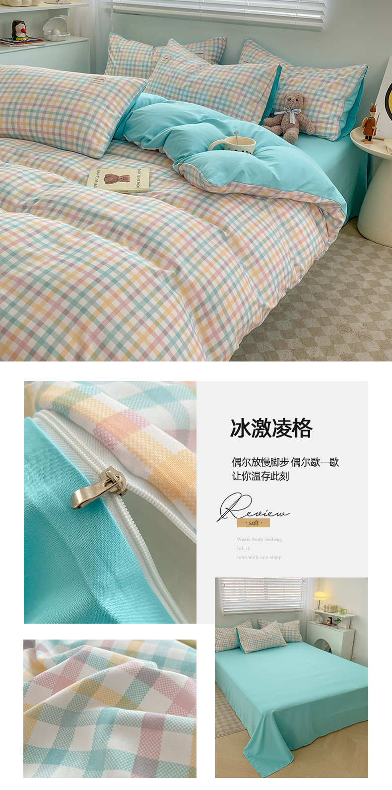 当前位置: 91家纺网 > 商品网购 > 床品套件 > 四件套 > 普通磨毛四件套 > 新款亲肤磨毛无印风格子水洗m床单床笠被套学生宿舍三件套四件套 冰激凌格