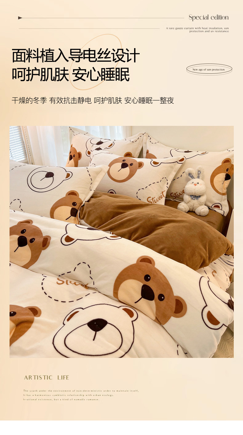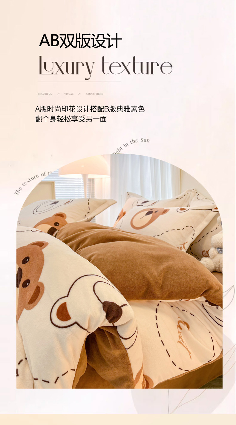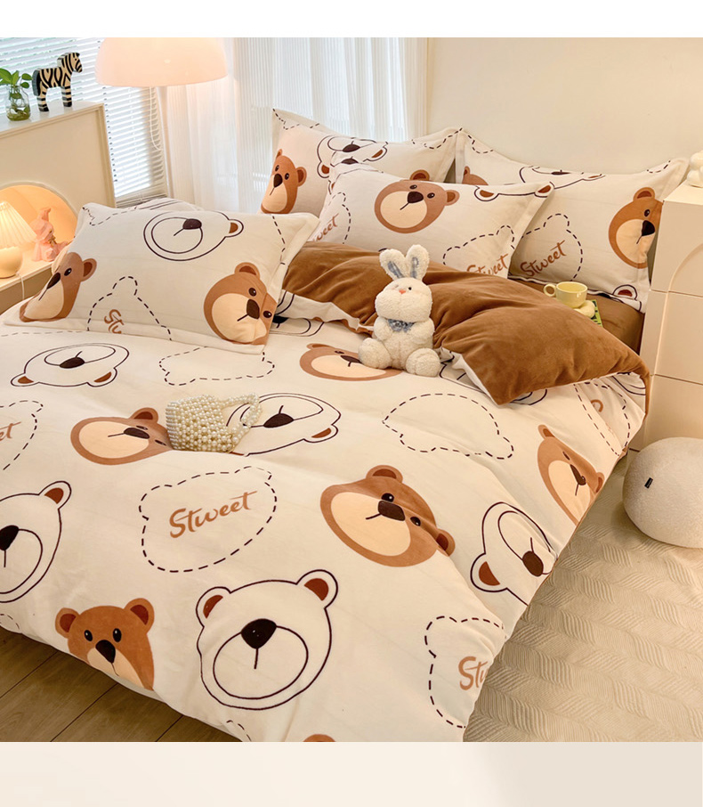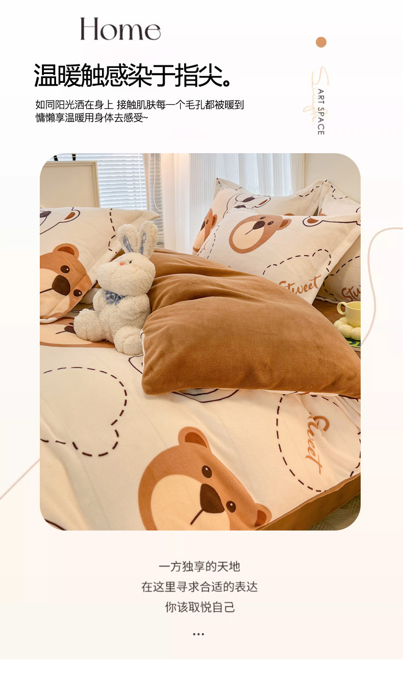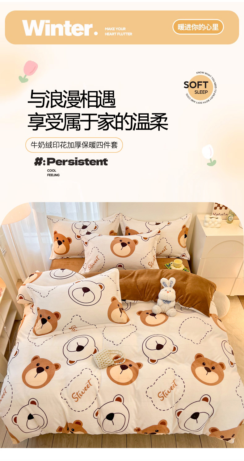 当前位置: 91家纺网 > 商品网购 > 床品套件 > 四件套 > 牛奶绒四件套 > 寐居家纺 2023新款小清新牛奶绒印花四件套 公仔熊