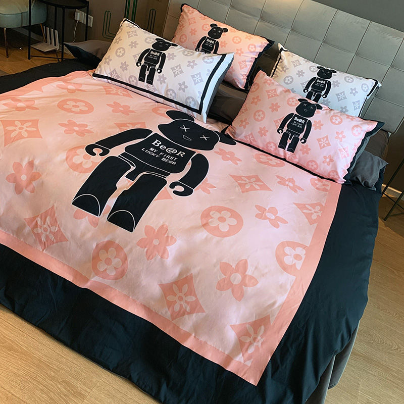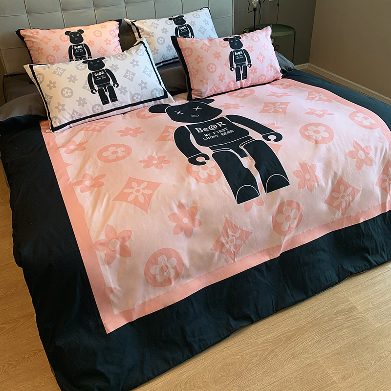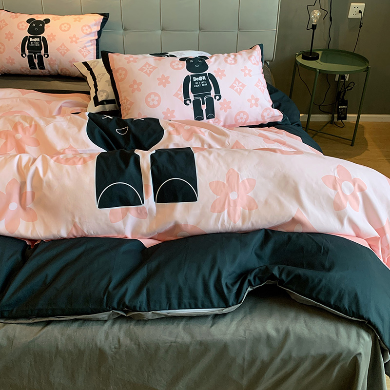 色鬼 2023新款舒适潮牌风磨毛四件套 小粉熊
