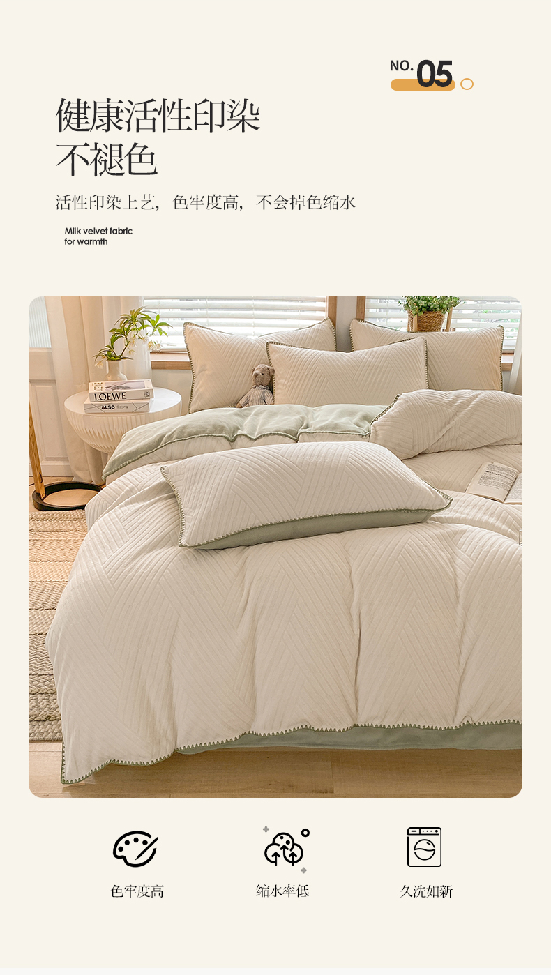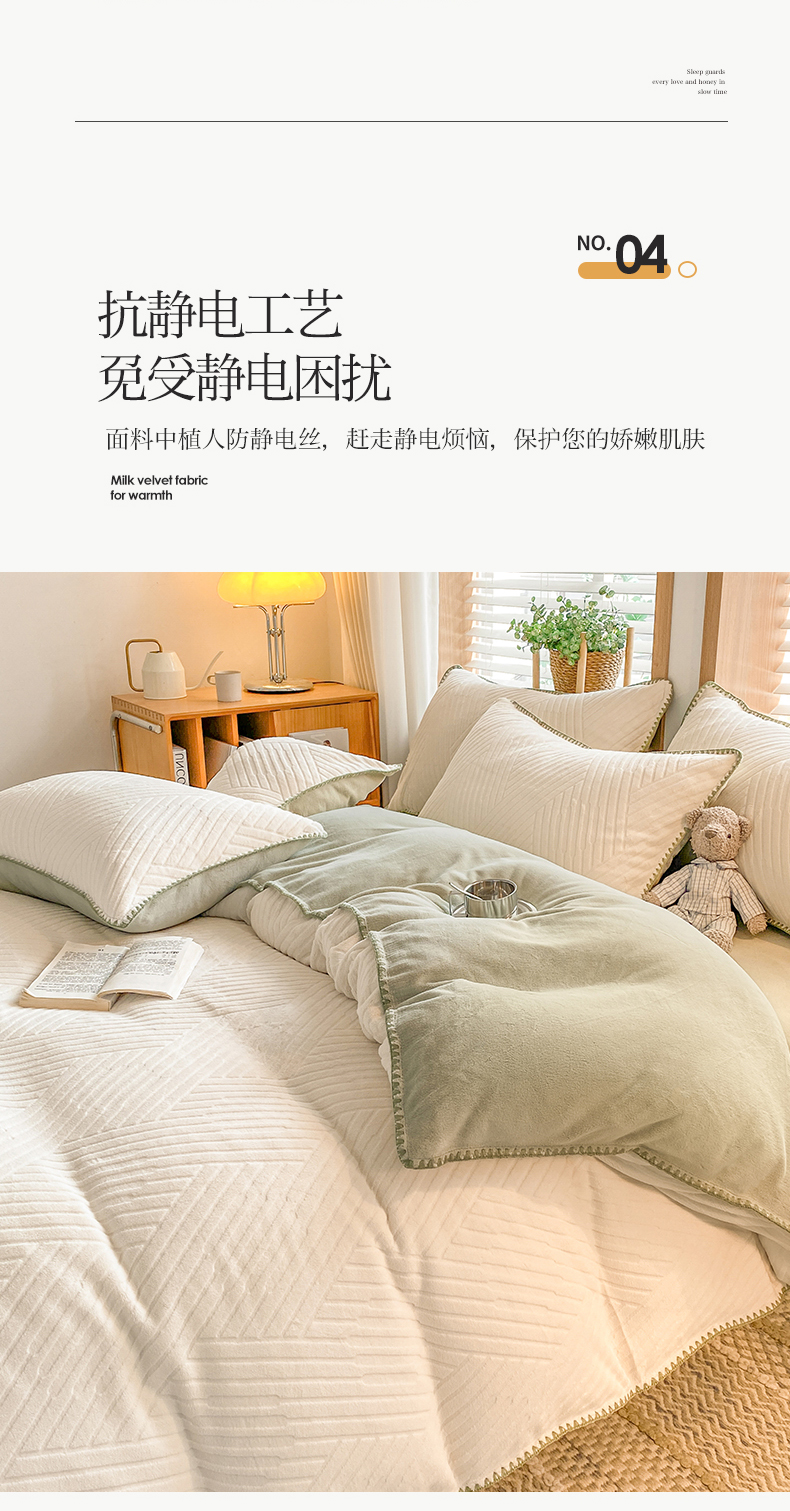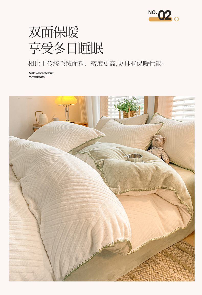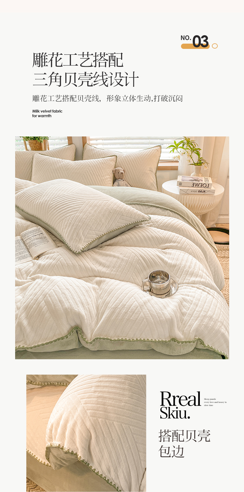 A类烂花雕花高克重加厚牛奶绒四件套三角贝壳边工艺 梵希