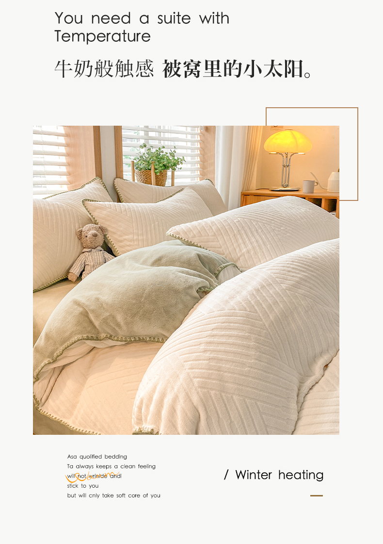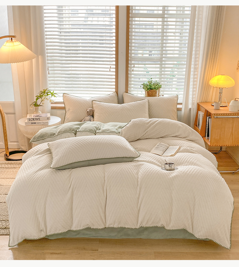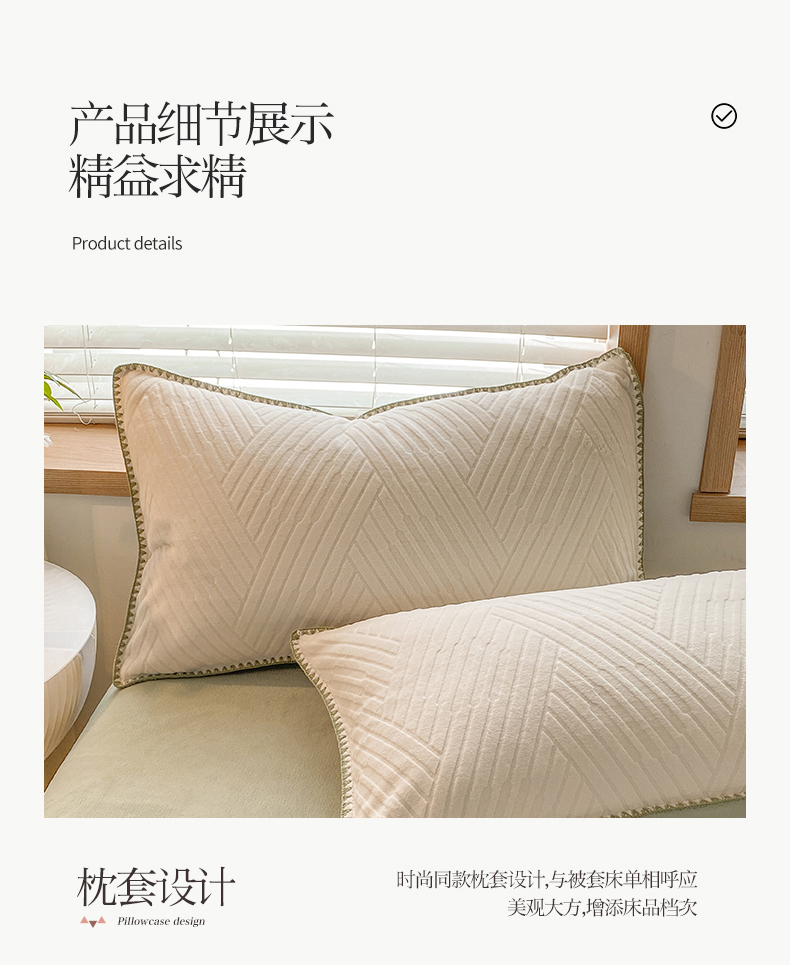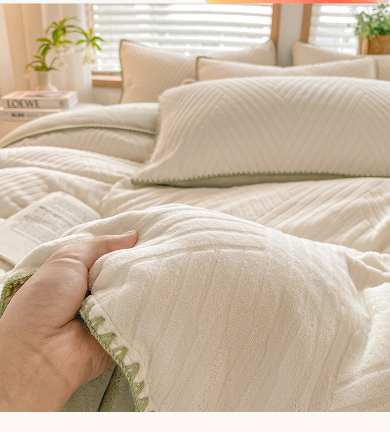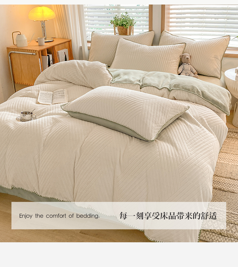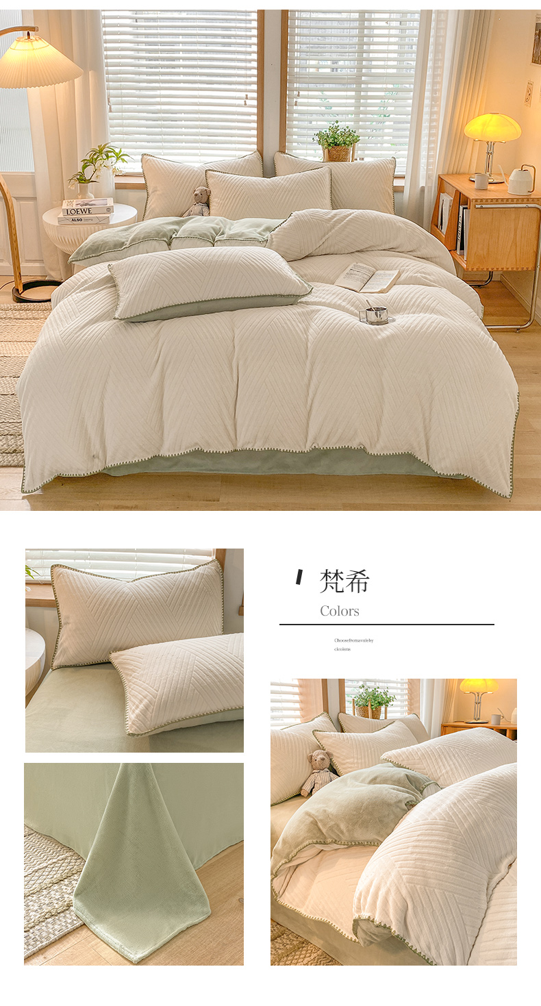 A类烂花雕花高克重加厚牛奶绒四件套三角贝壳边工艺 梵希