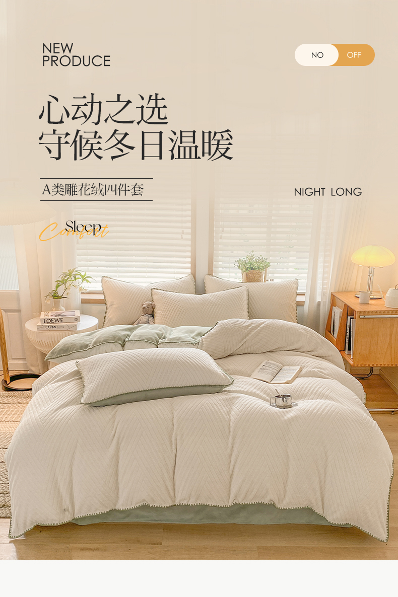 (总)简如 2025新款A类230克加厚立体雕花绒四件套,安吉拉-粉玉,安吉拉-海鸥灰,安吉拉-浅灰,安吉拉-浅绿,安吉拉-天空蓝,米兰-粉,米兰-米驼,米兰-玉,米兰-中灰