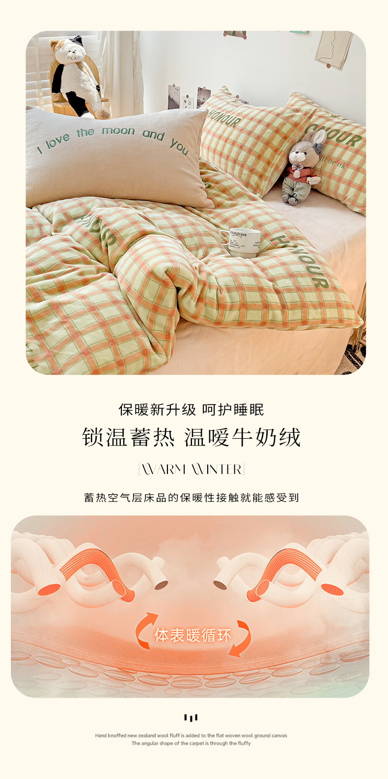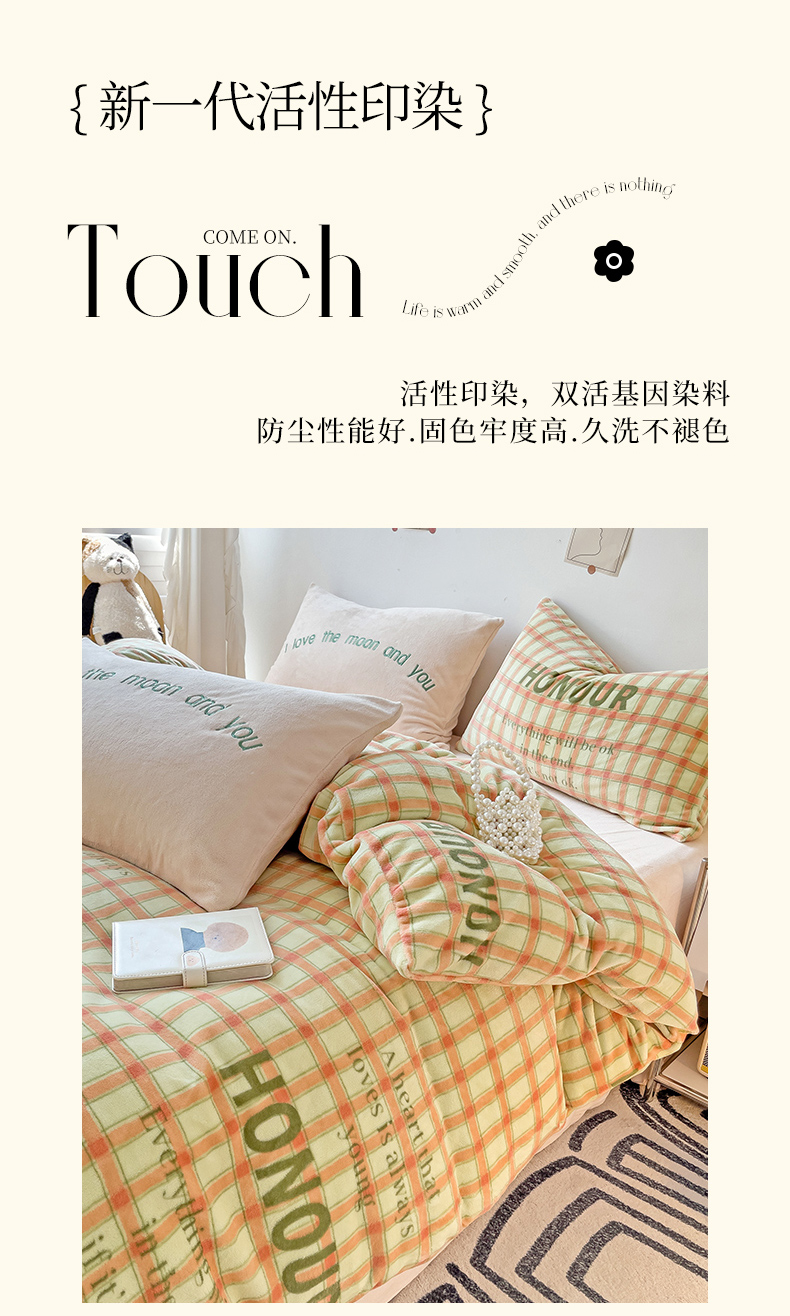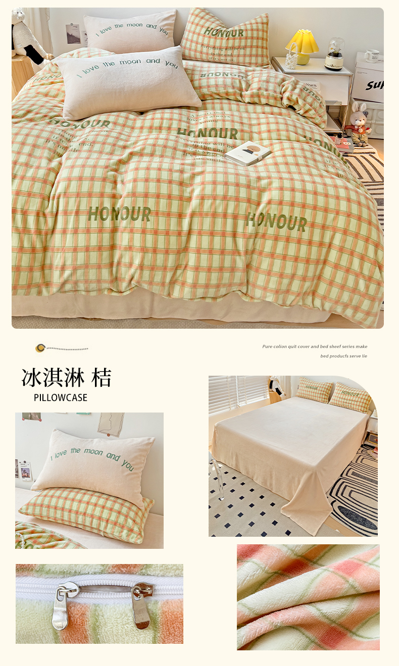 山茶家纺 2023新款高克重牛奶绒印花四件套 冰淇淋 桔
