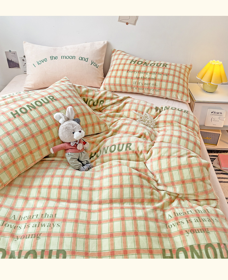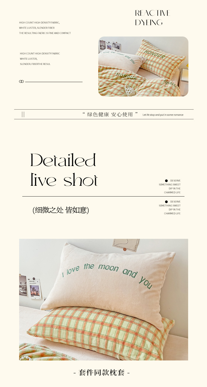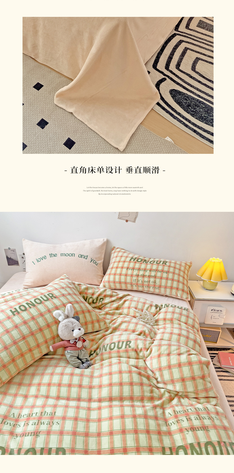 山茶家纺 2023新款高克重牛奶绒印花四件套 冰淇淋 桔