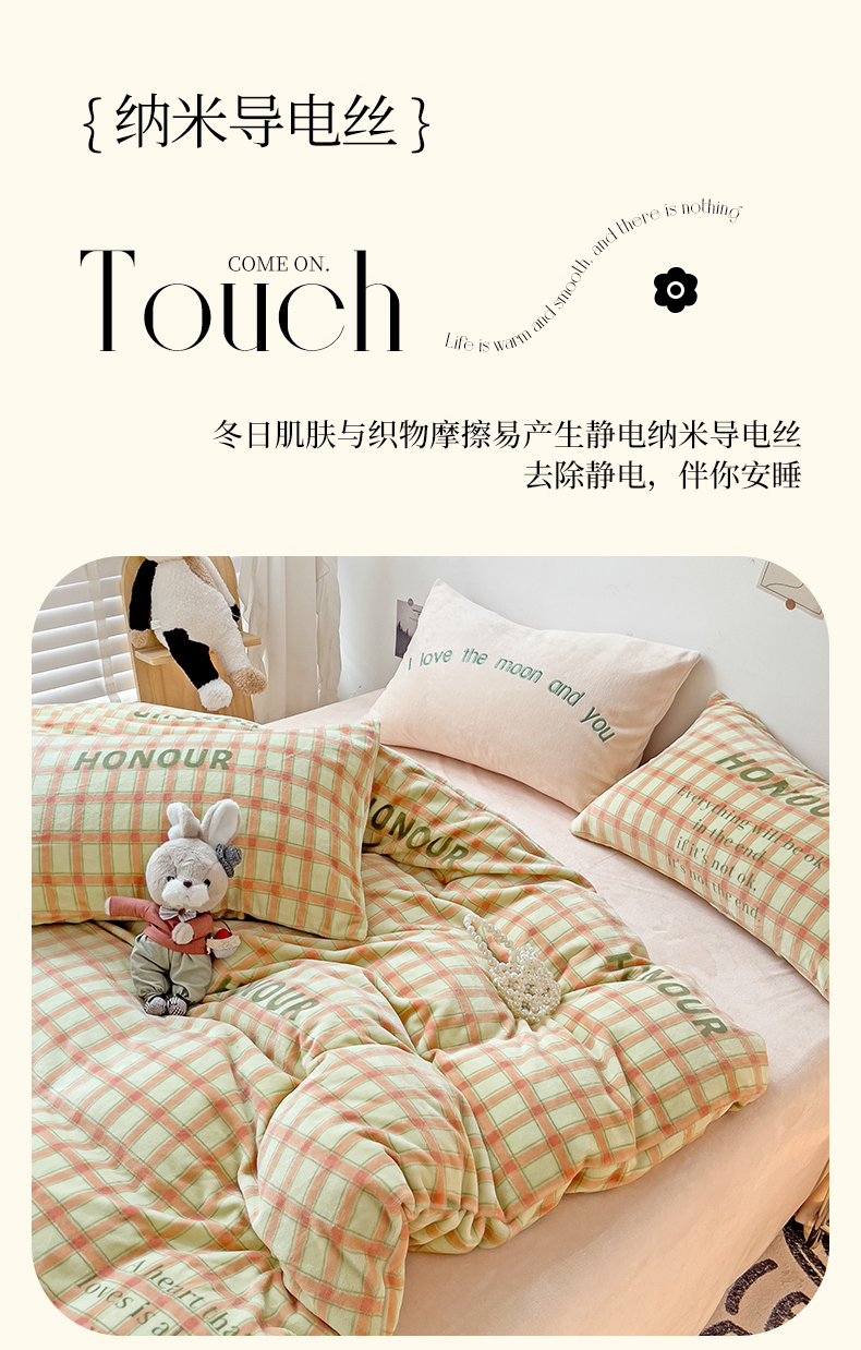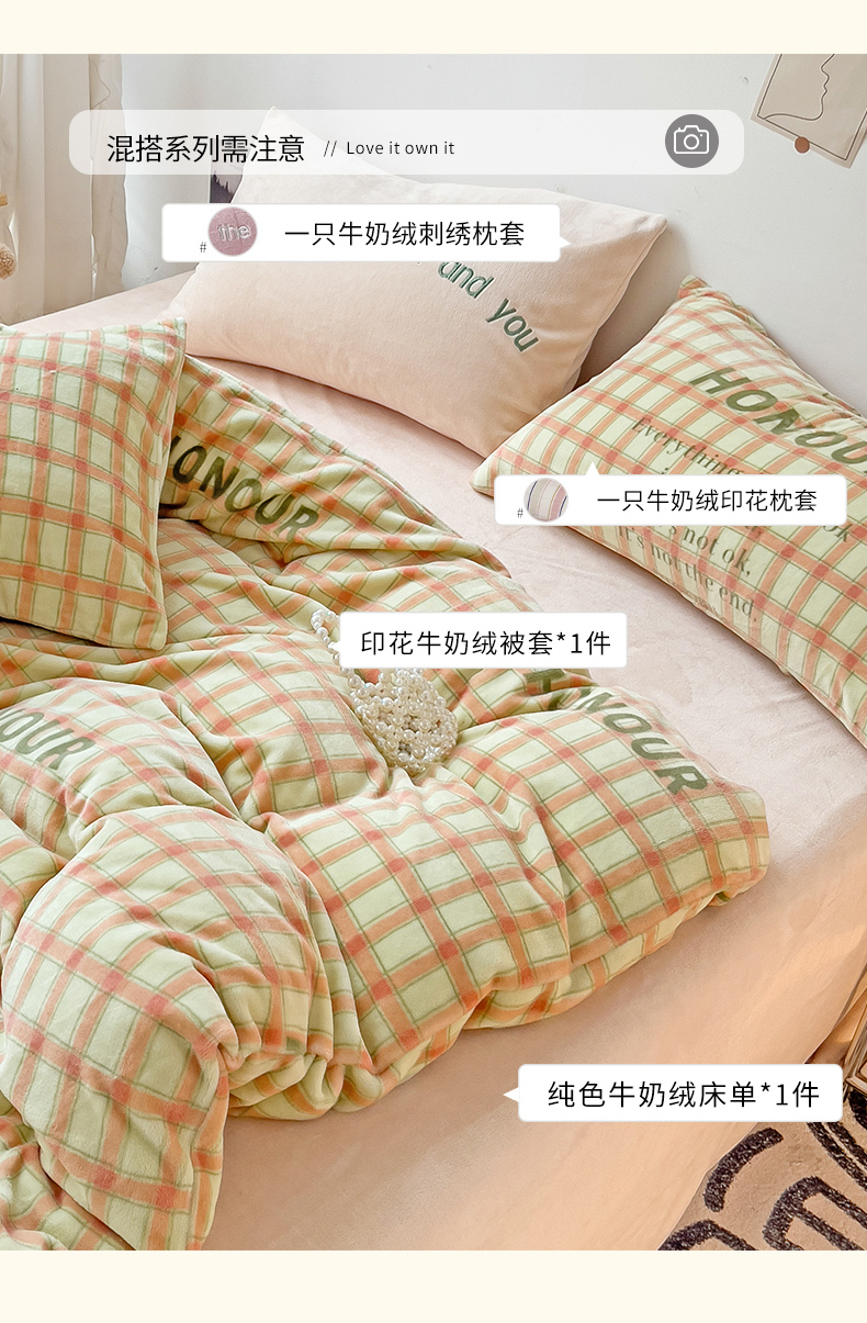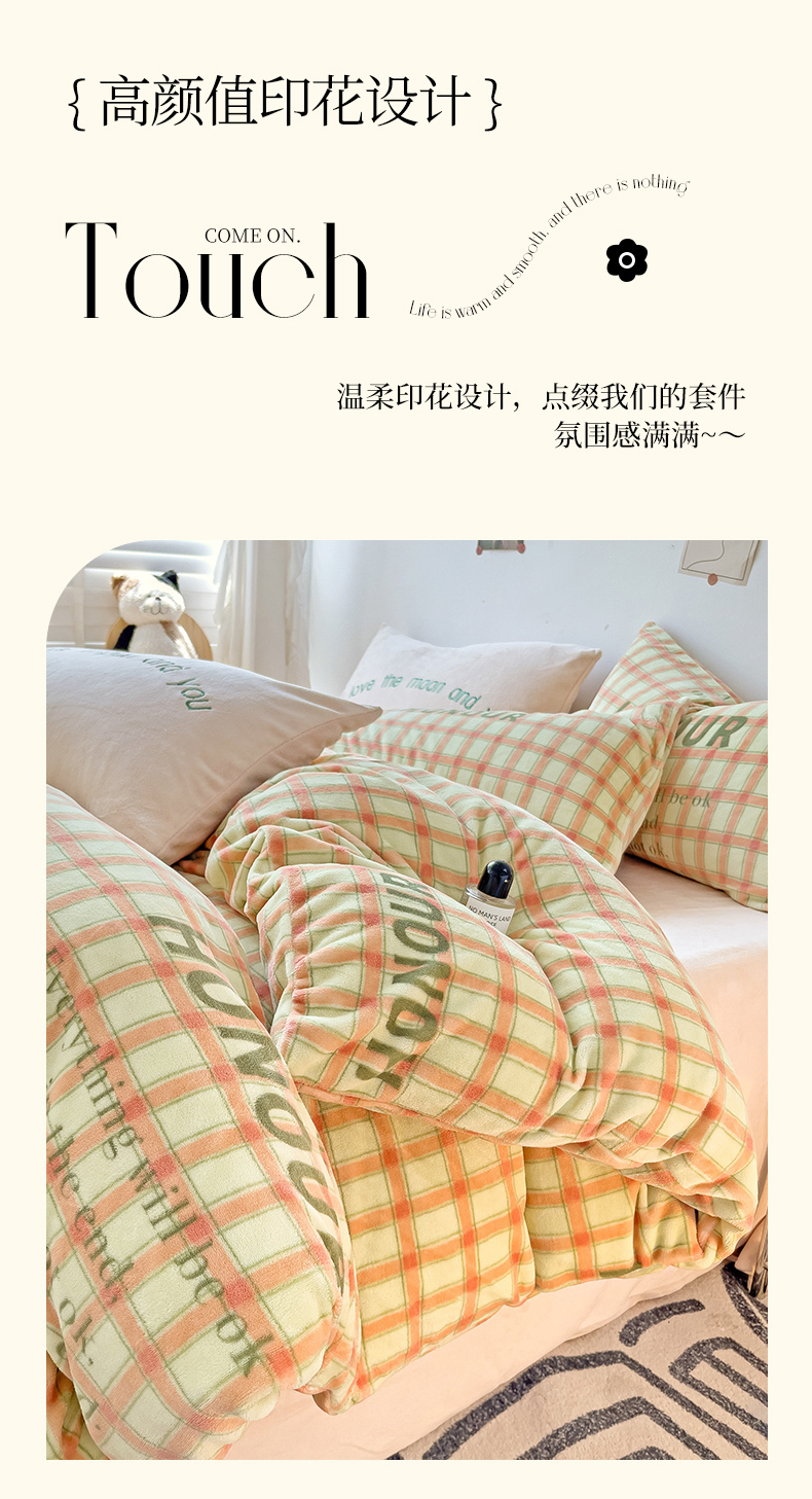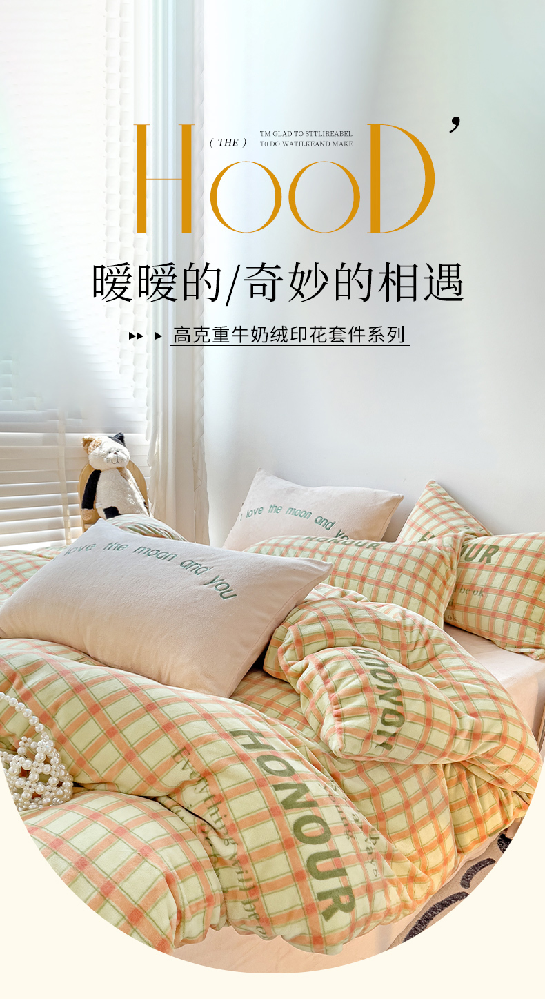 商品名称:山茶家纺 2023新款高克重牛奶绒印花四件套 冰淇淋 桔