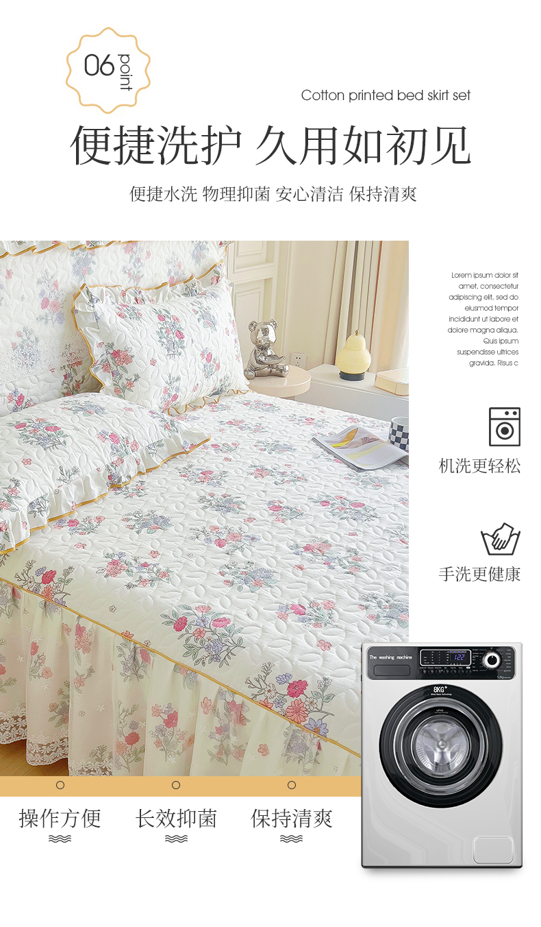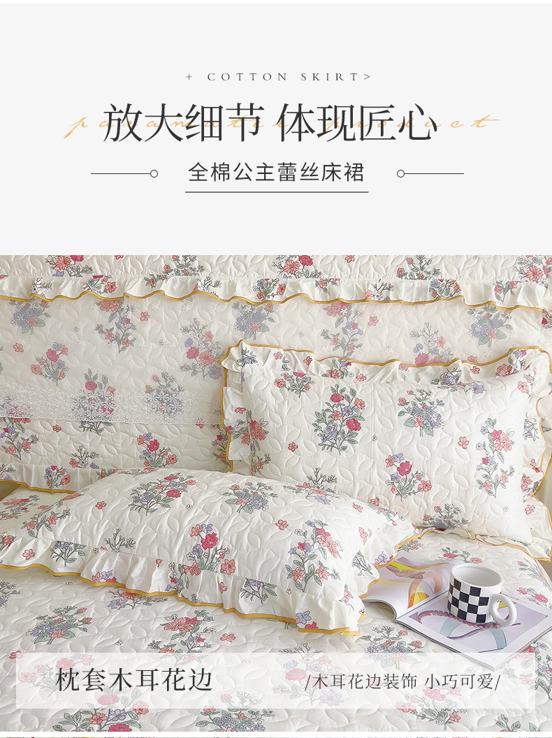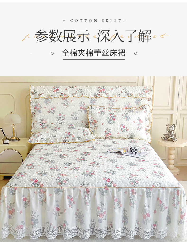 商品名称:十个点 2024新款印花夹棉蕾丝单床裙-玲珑 诗雨