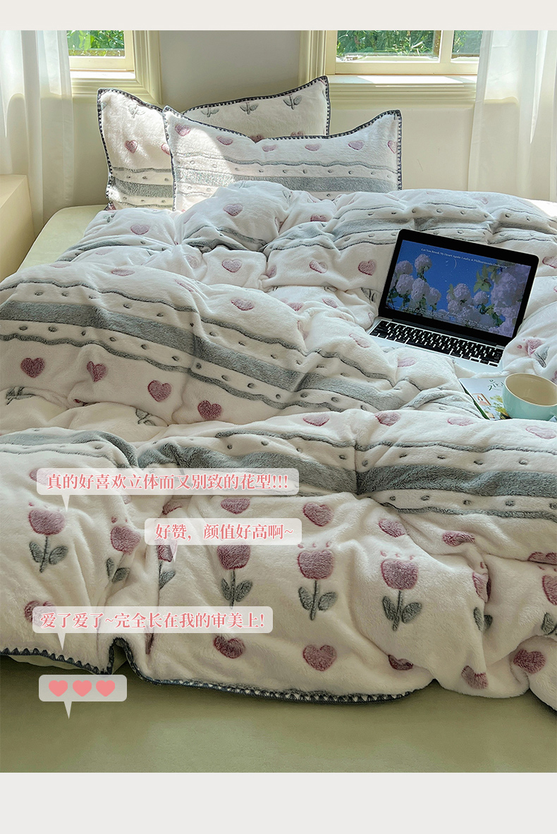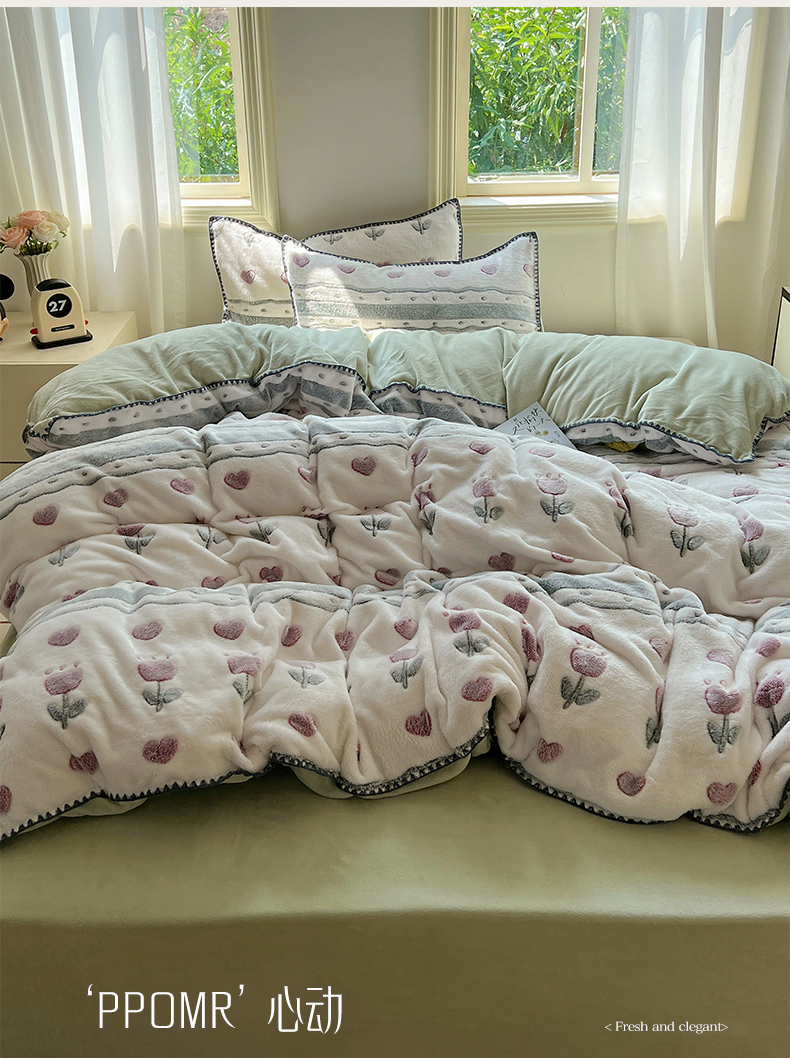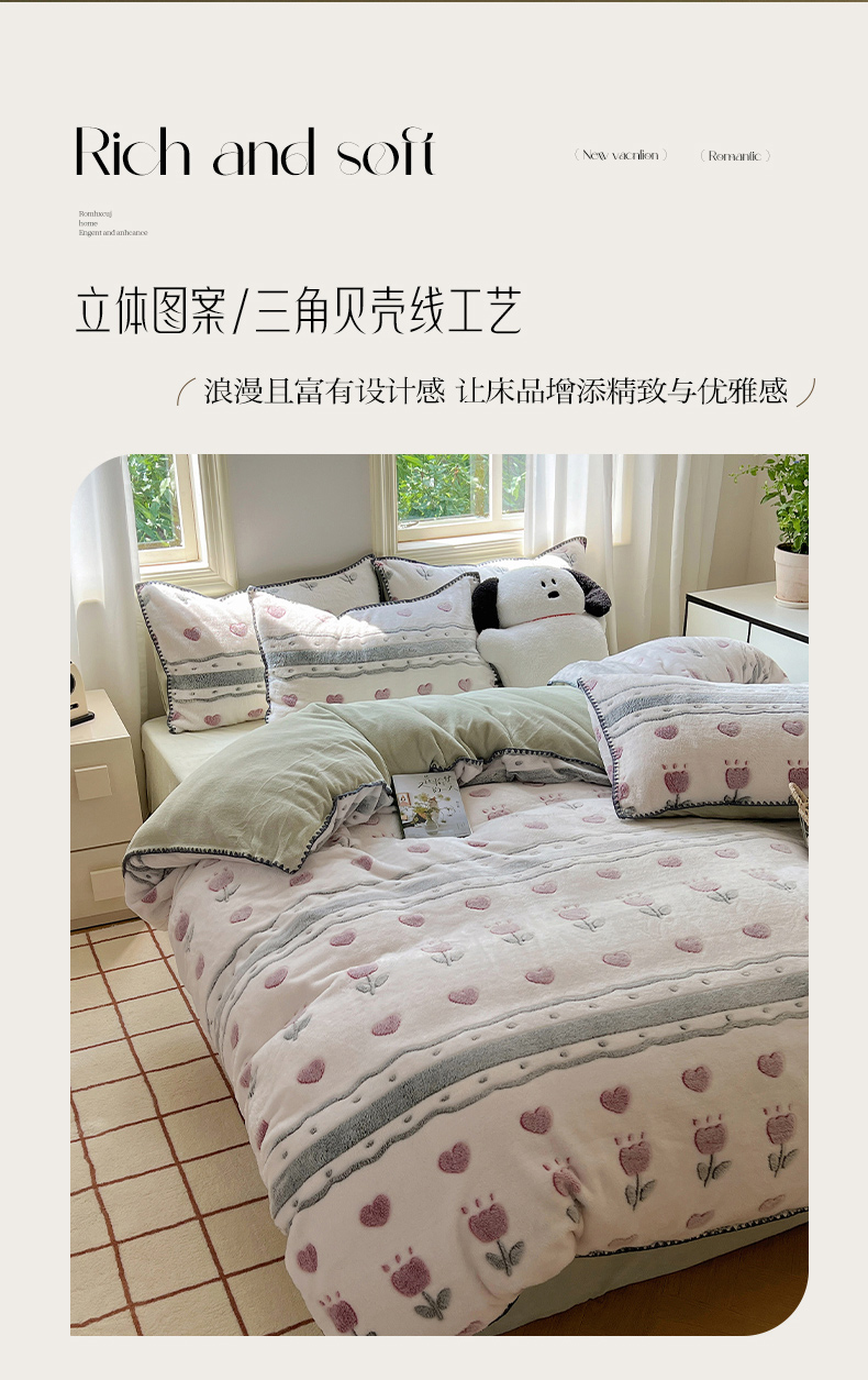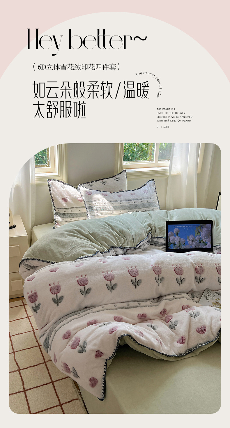 三朵家纺 2023新款高克重雪花绒绒混搭系列四件套 邂逅花季