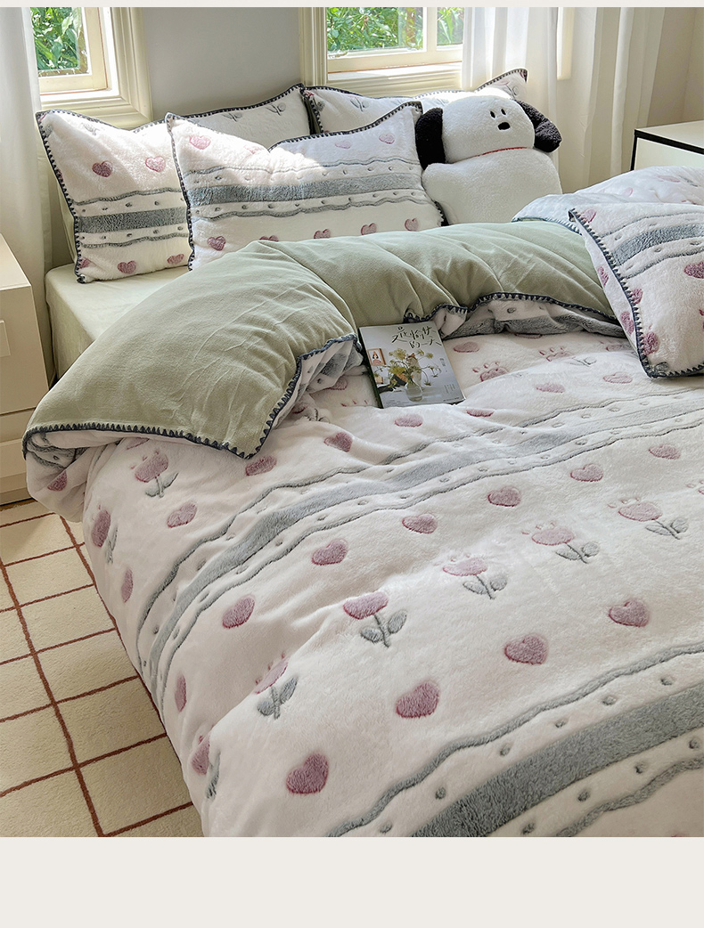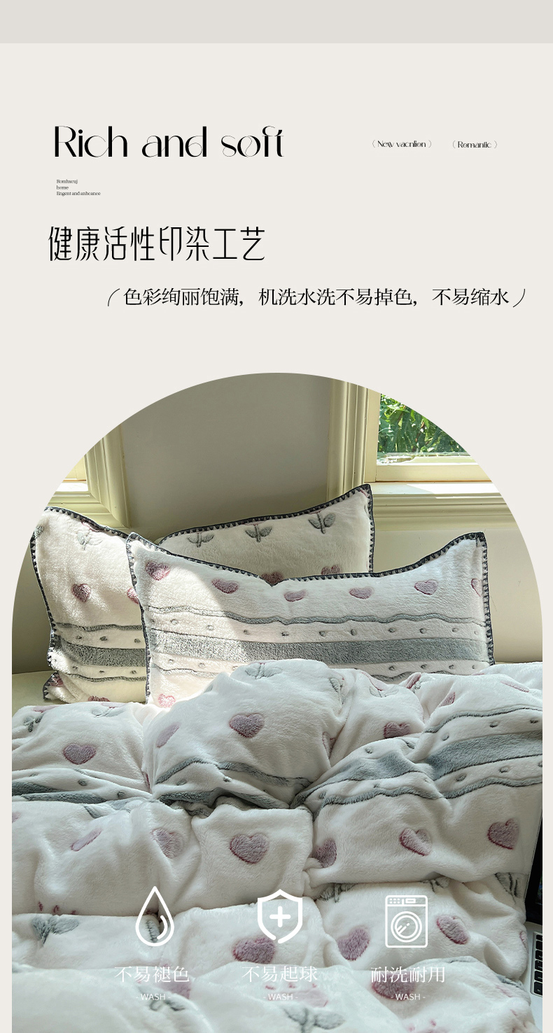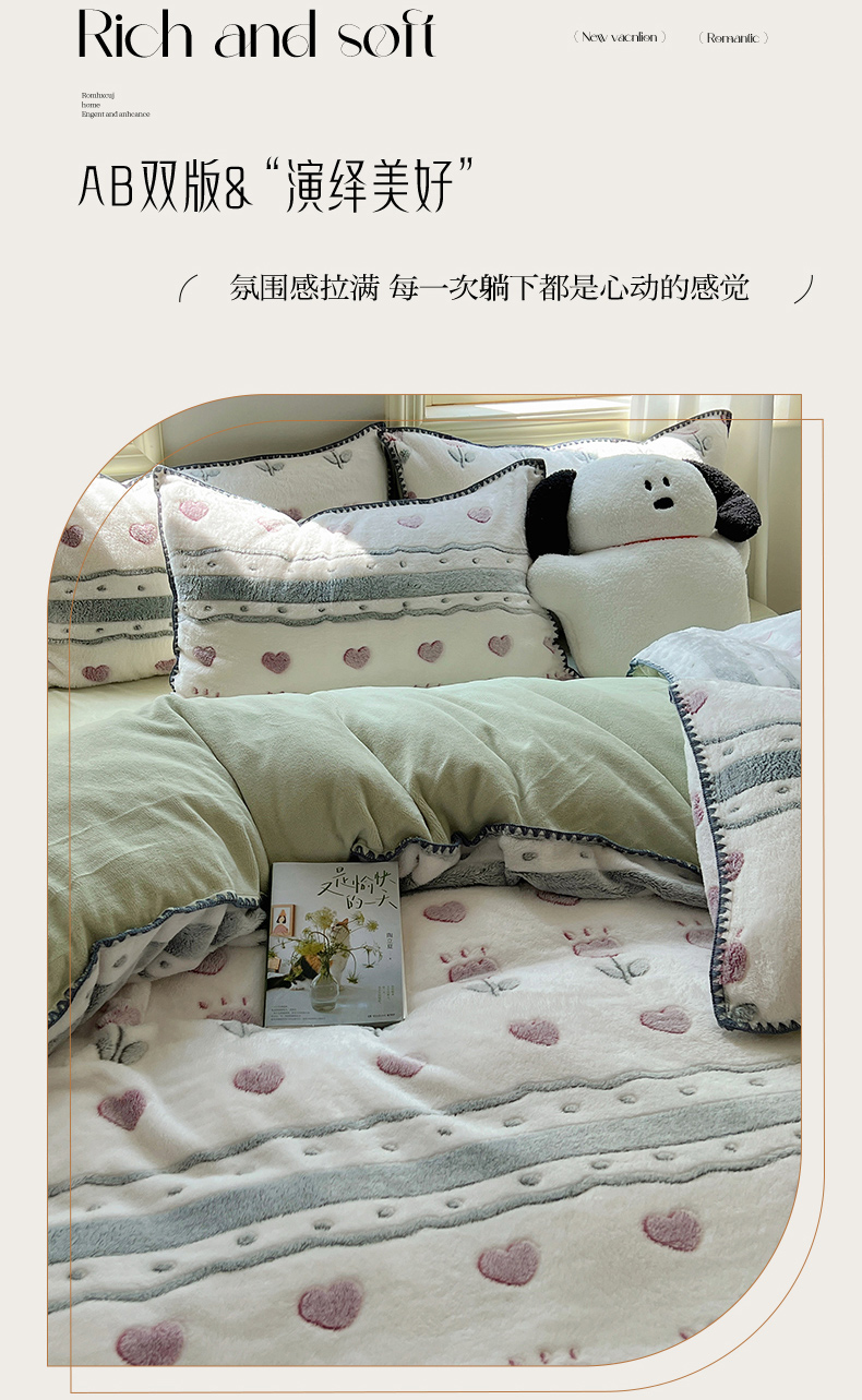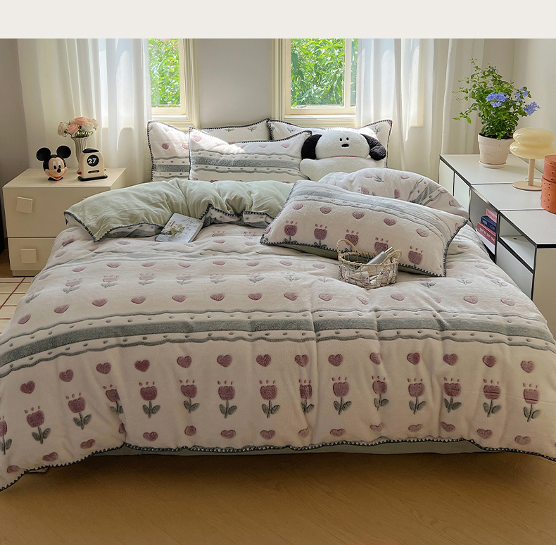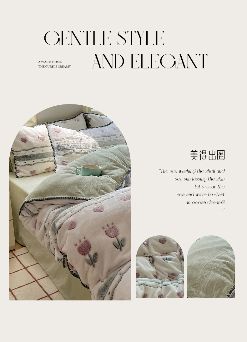 三朵家纺 2023新款高克重雪花绒绒混搭系列四件套 邂逅花季