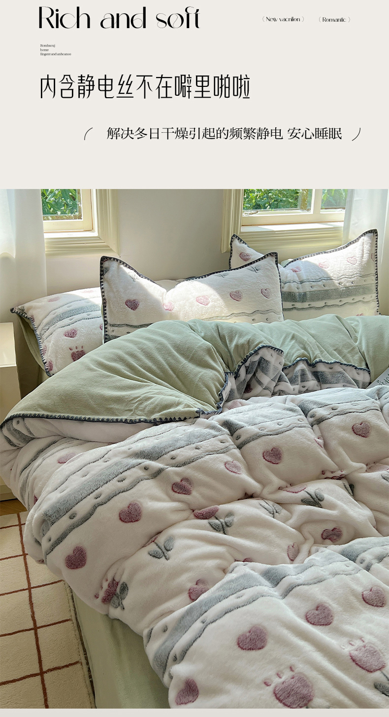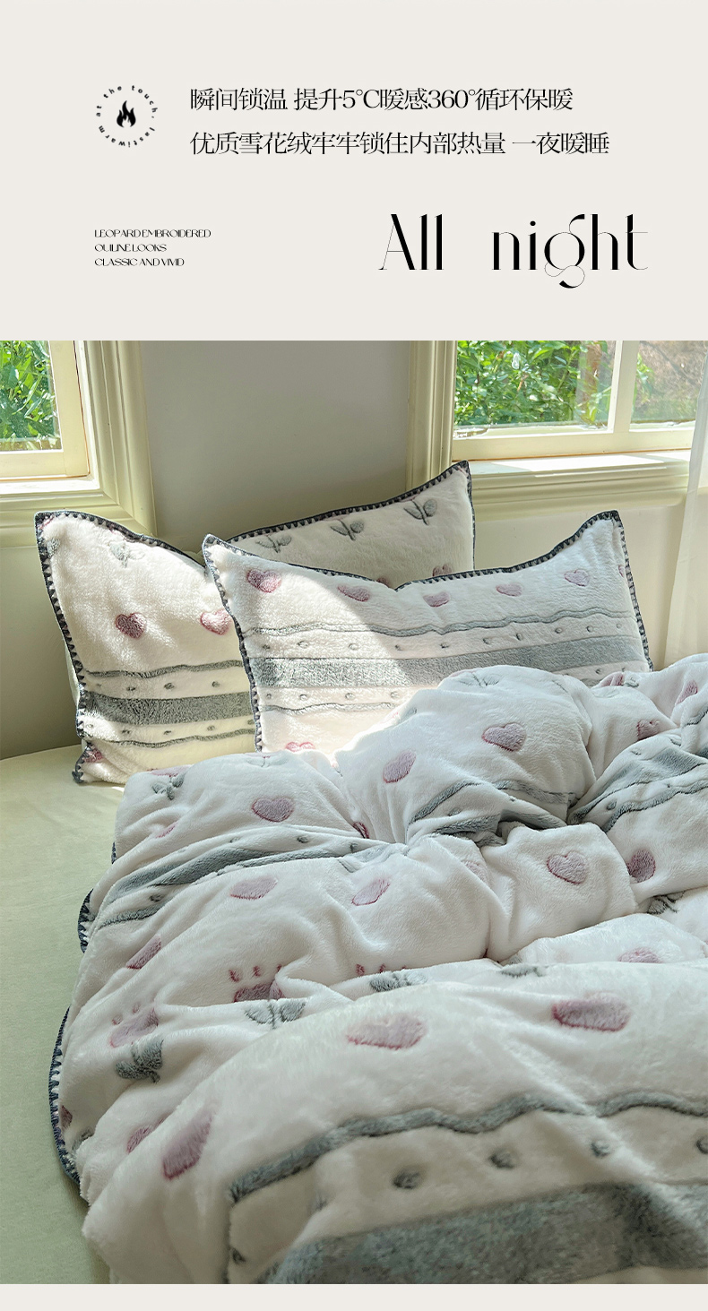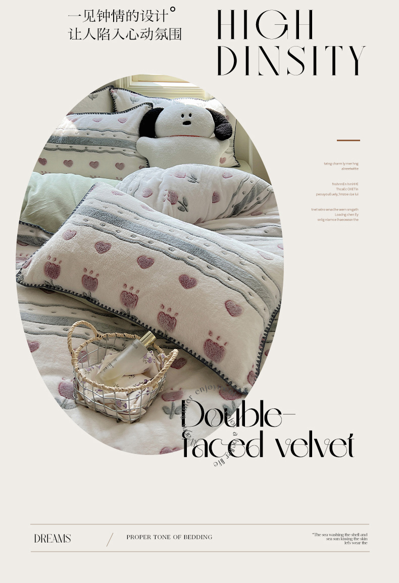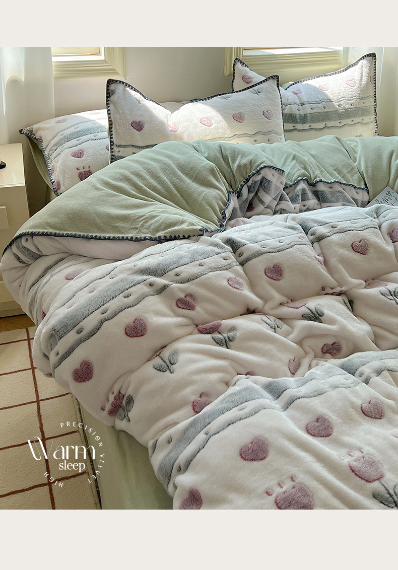 三朵家纺 2023新款高克重雪花绒绒混搭系列四件套 邂逅花季