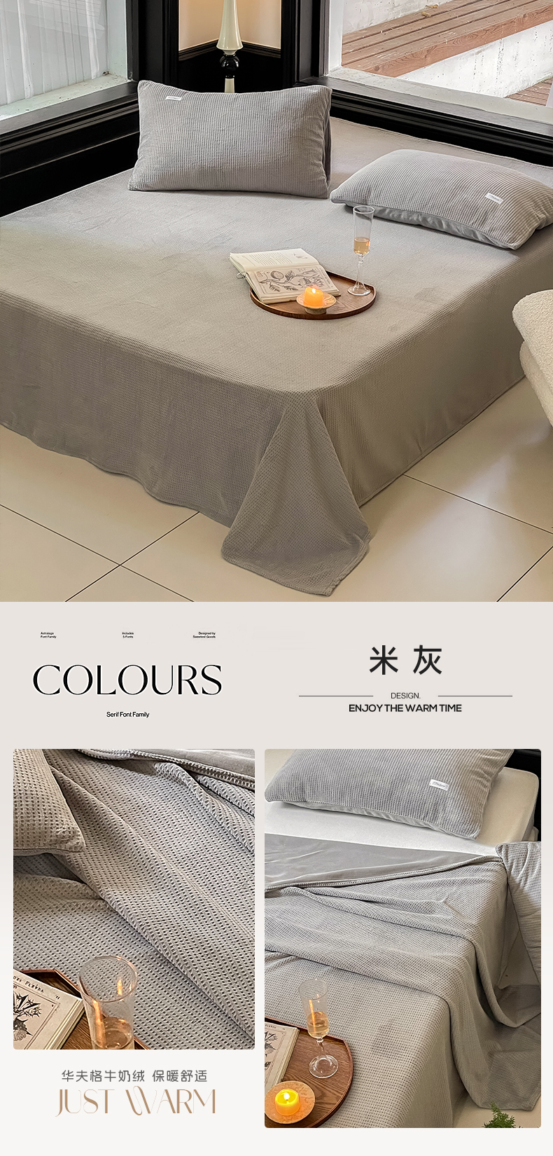 商品名称:时光里 2023新款全消光华夫格绒-单床单 米灰