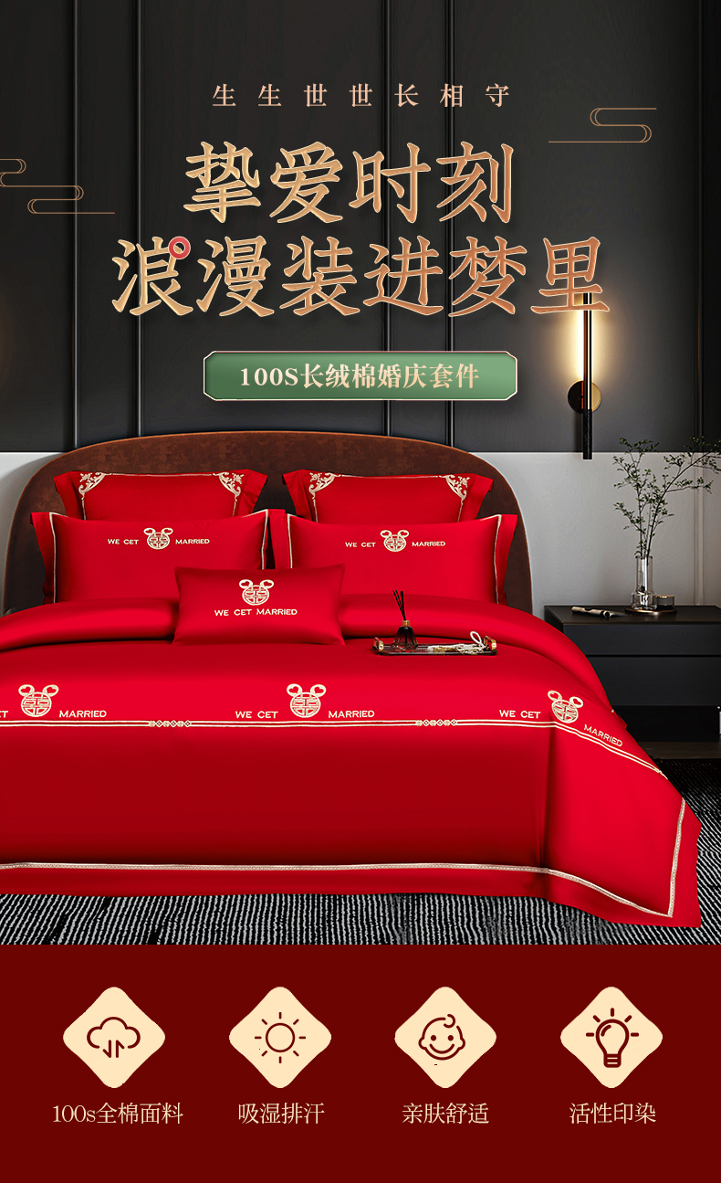 商品名称:皇潮婚庆馆 新款100支长绒棉婚庆套件 米奇