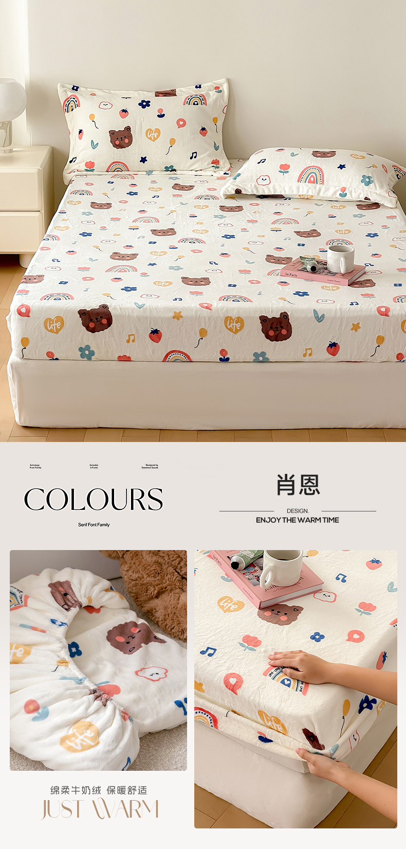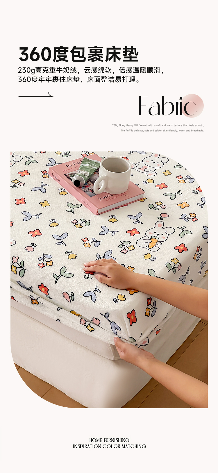 商品名称:时光里 2023新款全消光加厚牛奶绒印花单品单床笠 肖恩