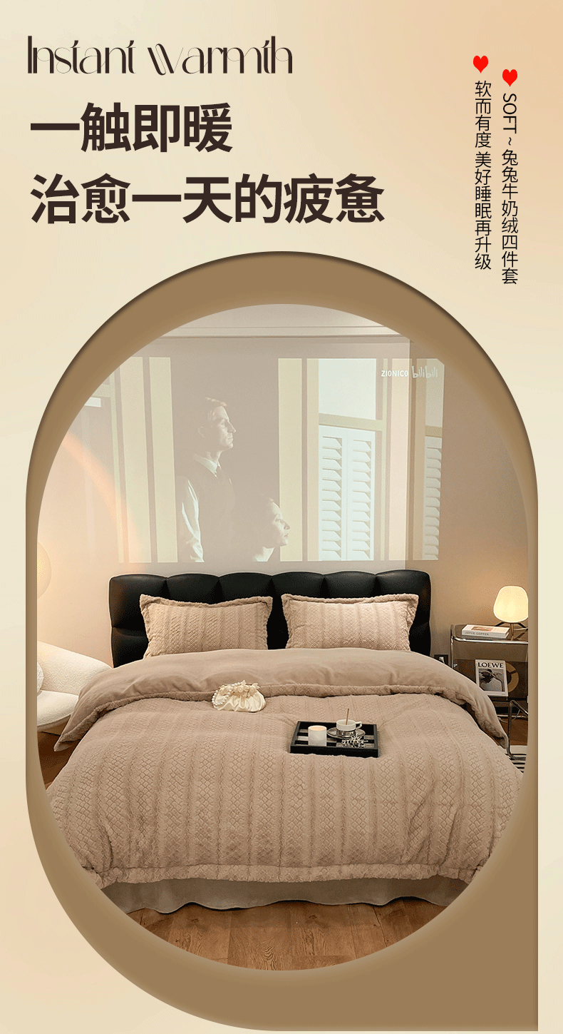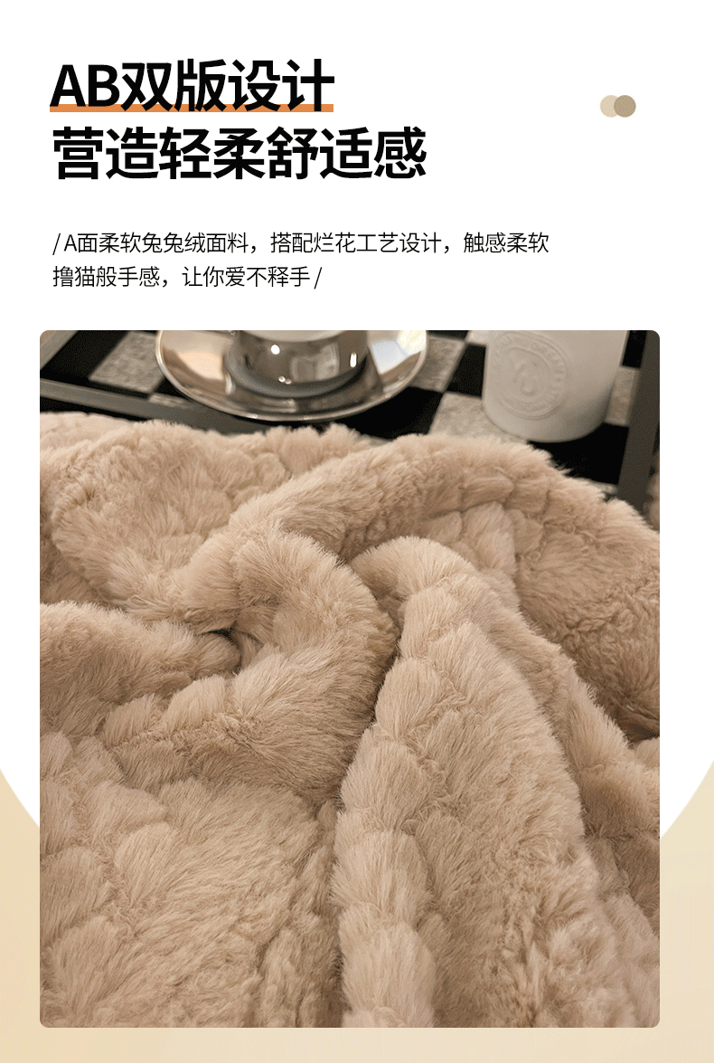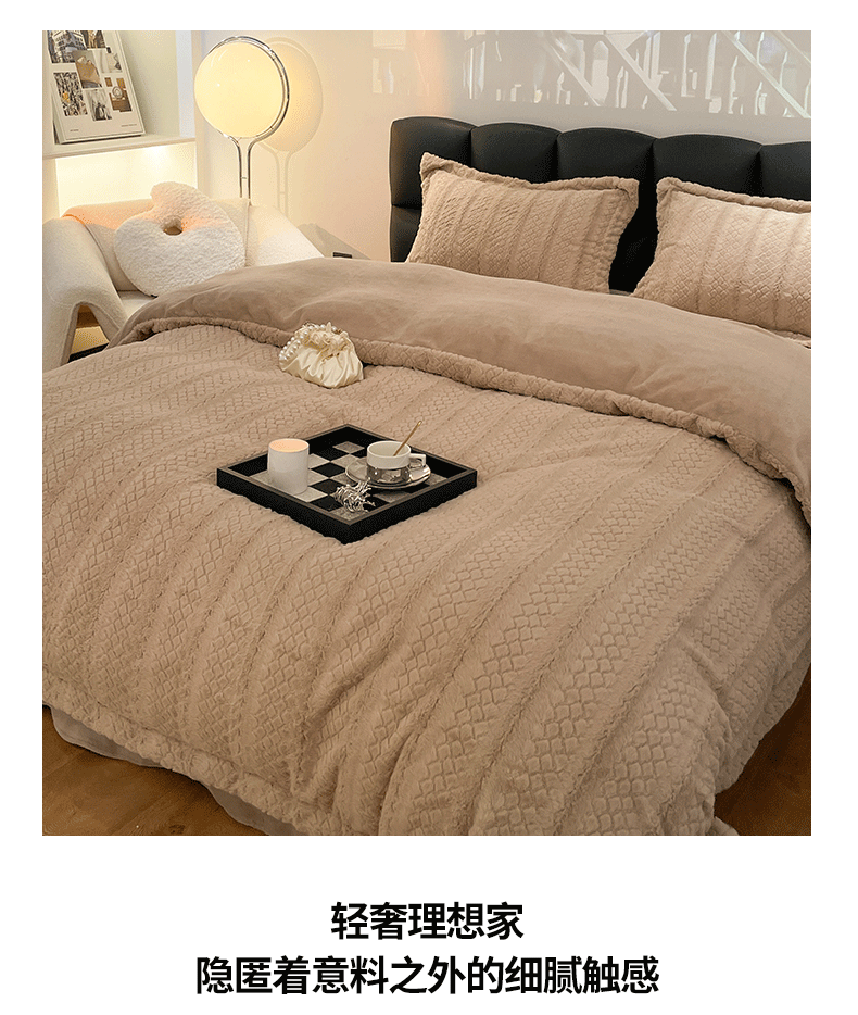 米奈家居 2024新款高克重兔兔绒立体雕花四件套 迷人咖