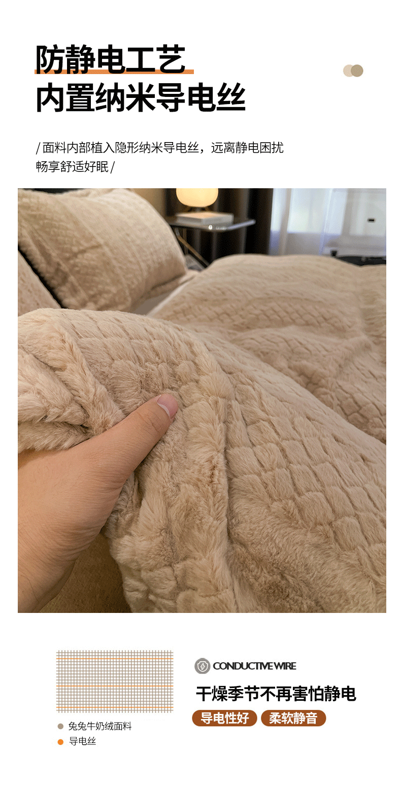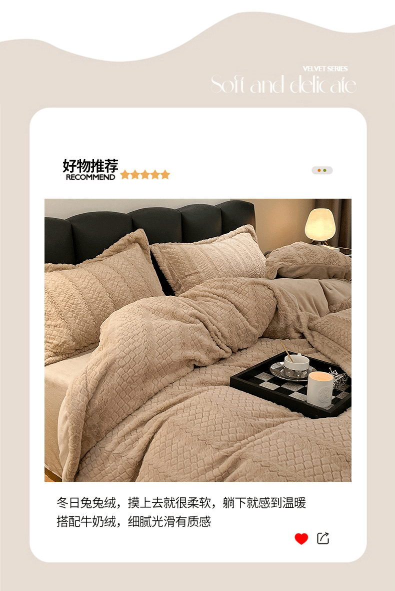 商品名称:米奈家居 2024新款高克重兔兔绒立体雕花四件套 迷人咖