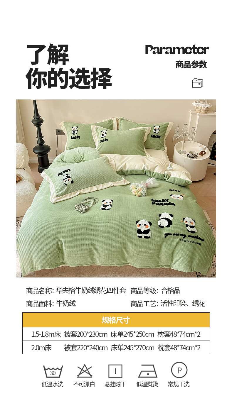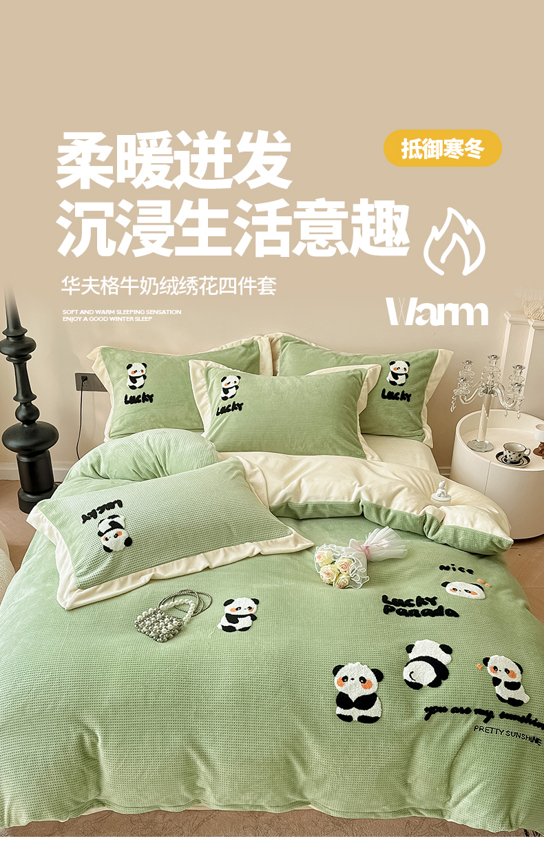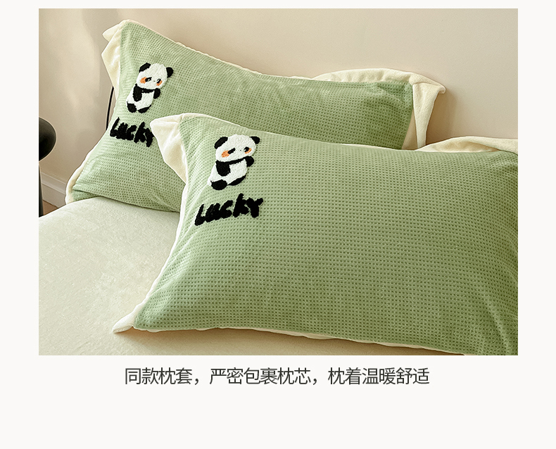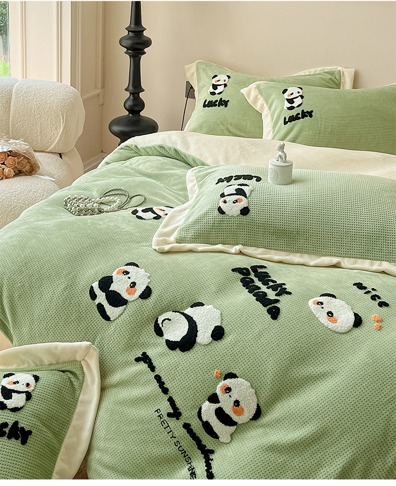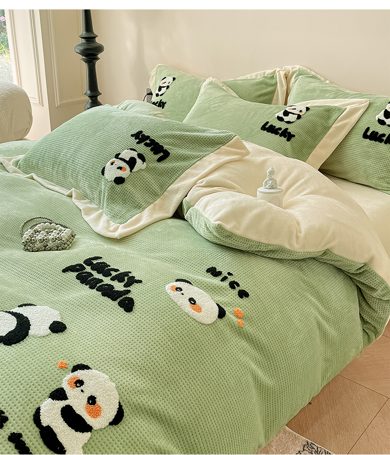 商品名称:懒猫家纺 2024新款【华夫格绣花】牛奶绒四件套 熊猫团子