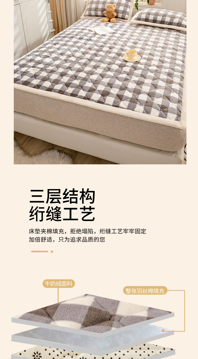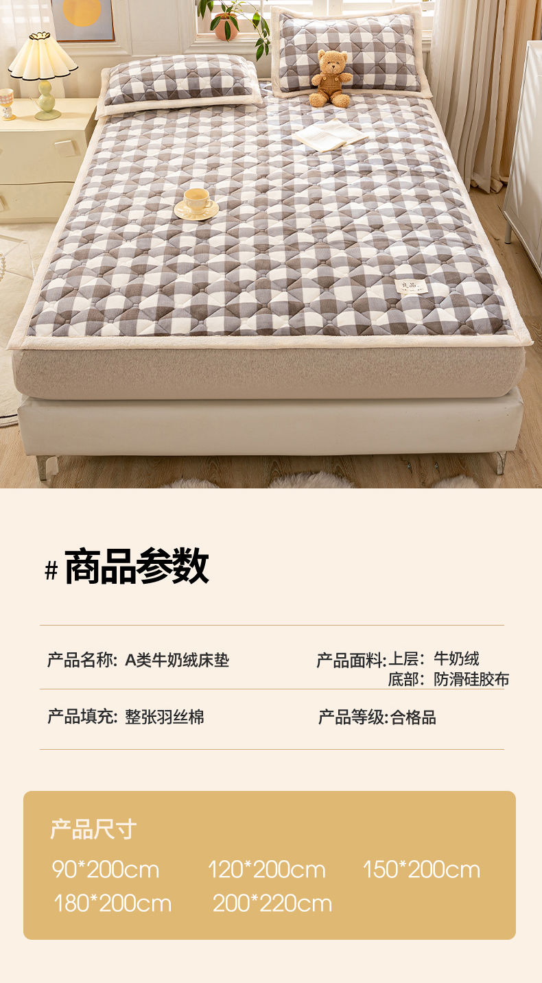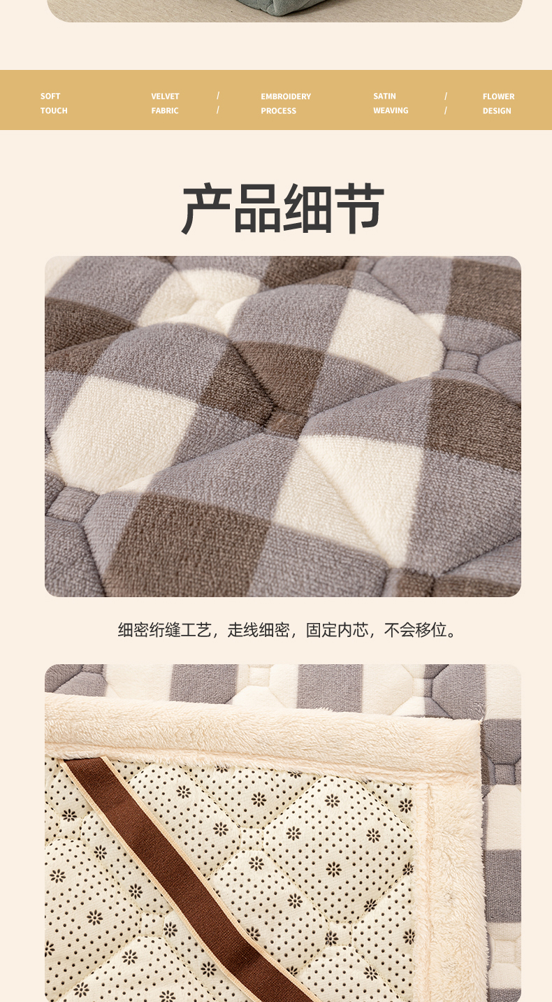 当前位置: 91家纺网 > 商品网购 > 床垫/床褥 > 普通床垫 > 慕木家纺 2025新款A类牛奶绒纯色印花加厚保暖床垫护垫床褥子 灰小格