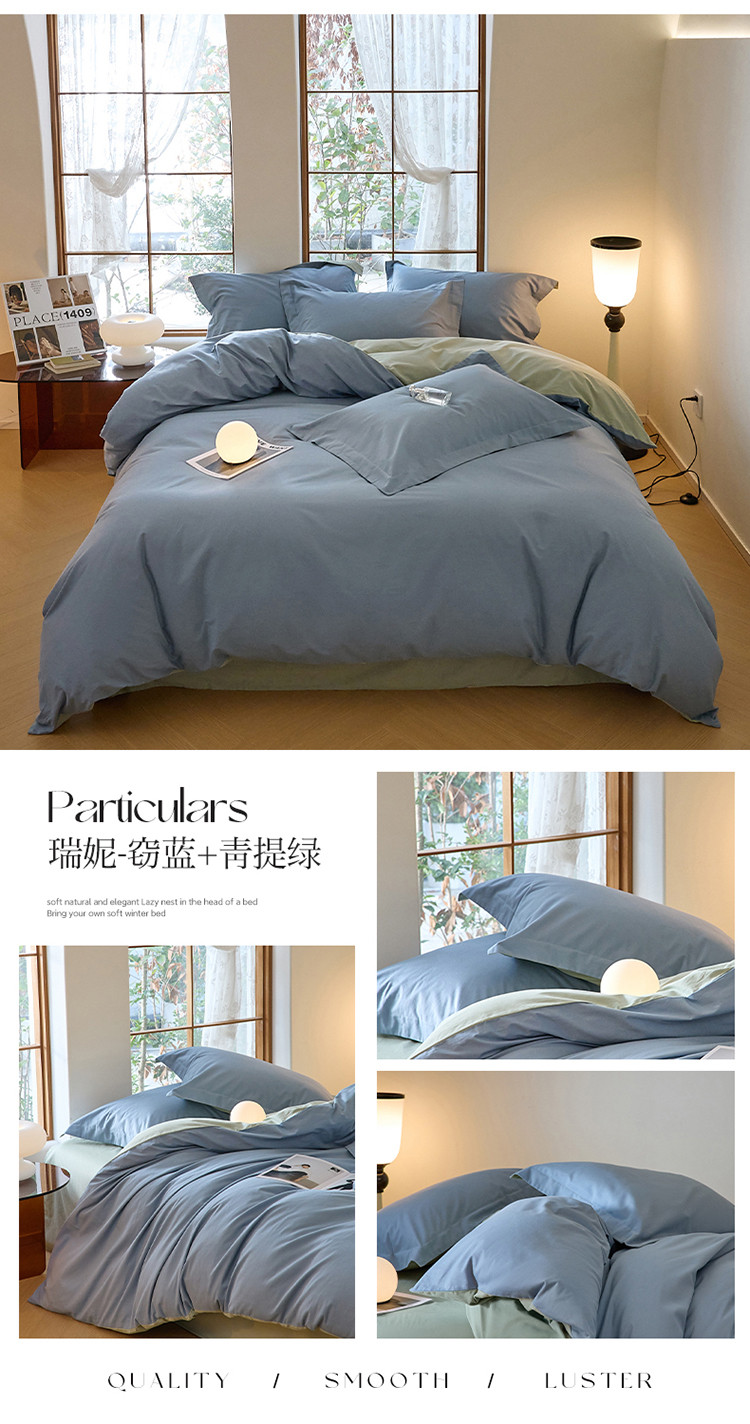 秀色2025高端50支加厚陶瓷磨毛全棉四件套奶油风瑞妮窃蓝+青提绿