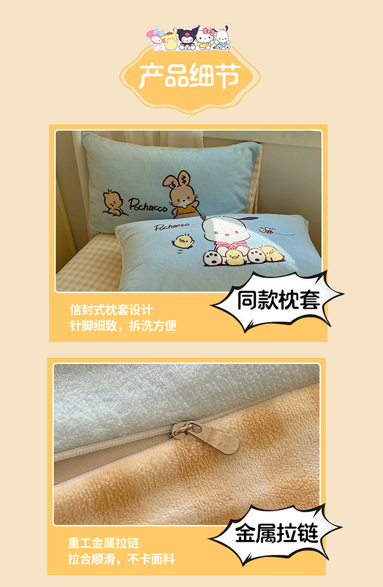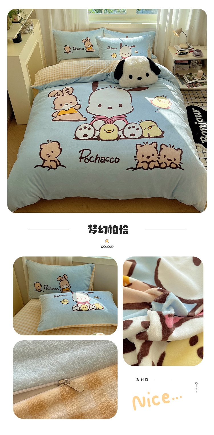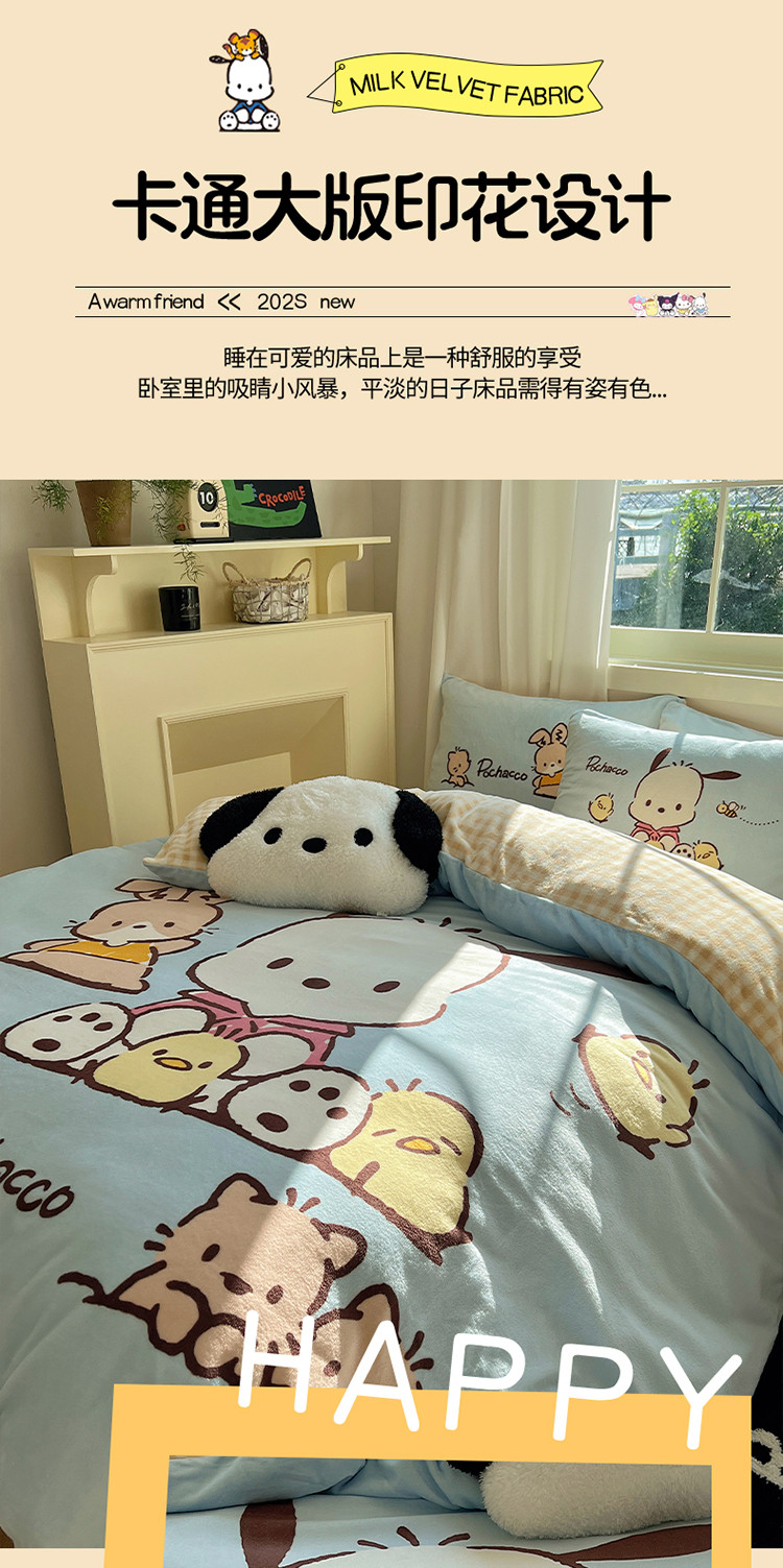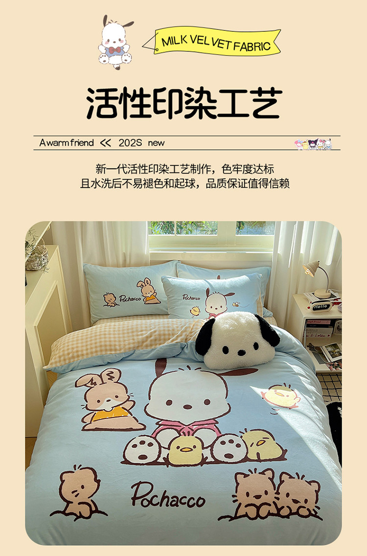 商品名称:三朵 2023新款三丽鸥牛奶绒数码印花大版系列四件套 梦幻帕恰
