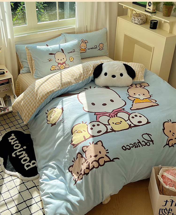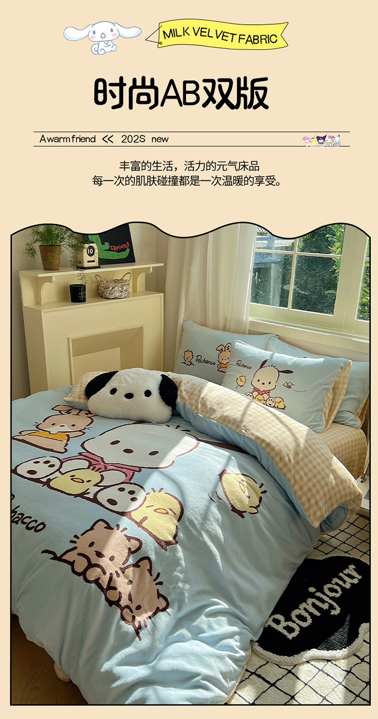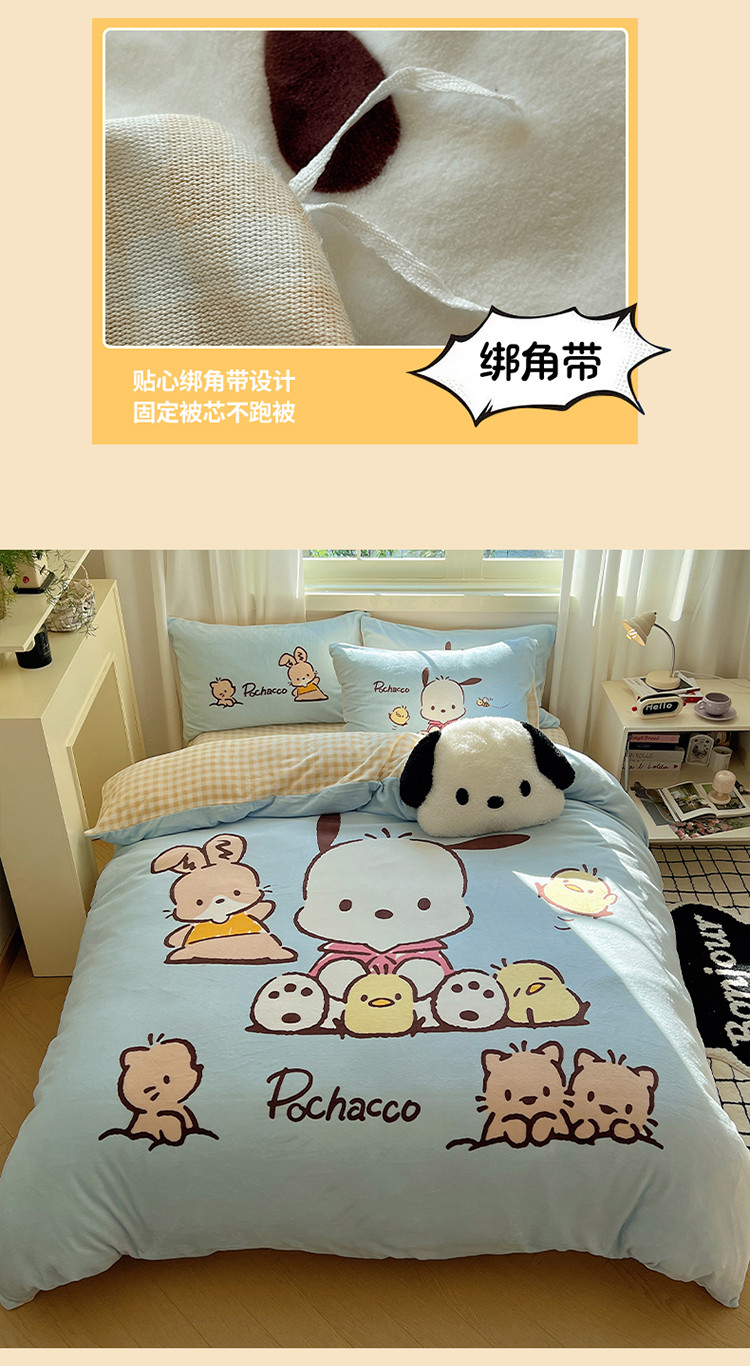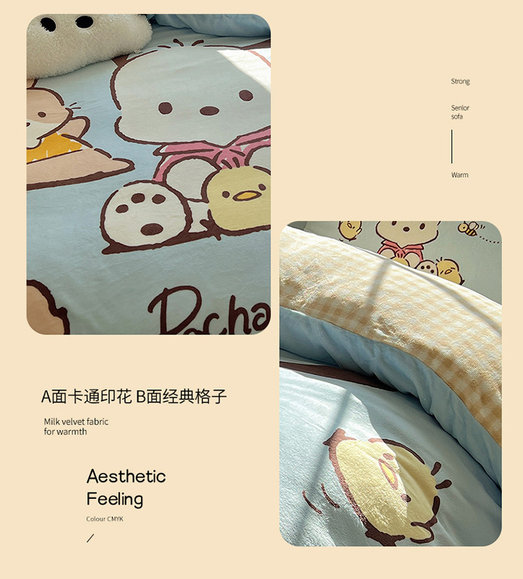 商品名称:三朵 2023新款三丽鸥牛奶绒数码印花大版系列四件套 梦幻帕恰