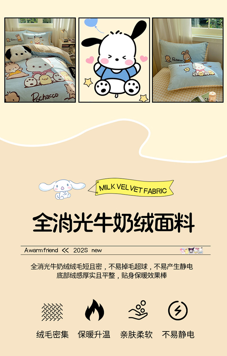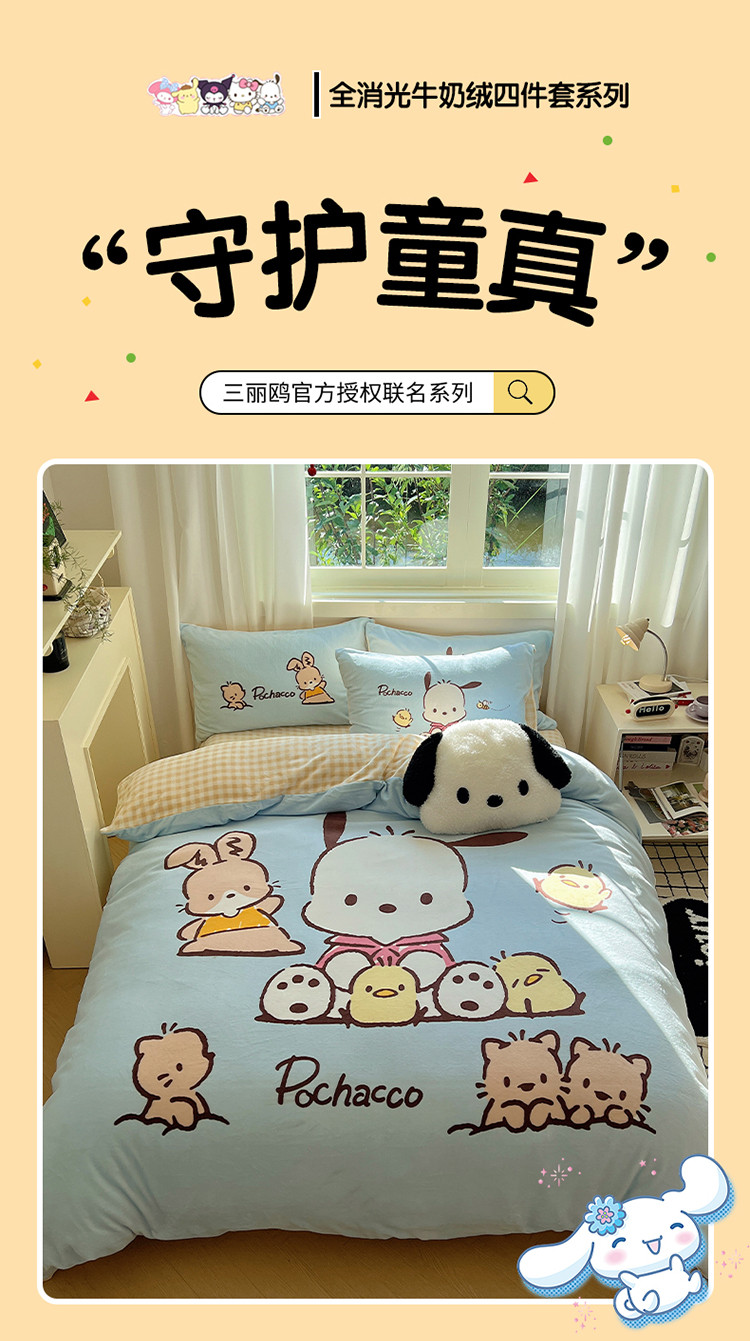(总)三朵家纺 2024新款数码大版牛奶绒印花三丽鸥系列四件套,冰激凌KT,粉红KT,滑板玉桂狗,库洛米幻影,快乐帕恰,蓝色帕恰,美好KT,萌萌玉桂狗,奶油KT,帕恰伙伴,少女美乐蒂,天使库洛米,甜蜜帕恰