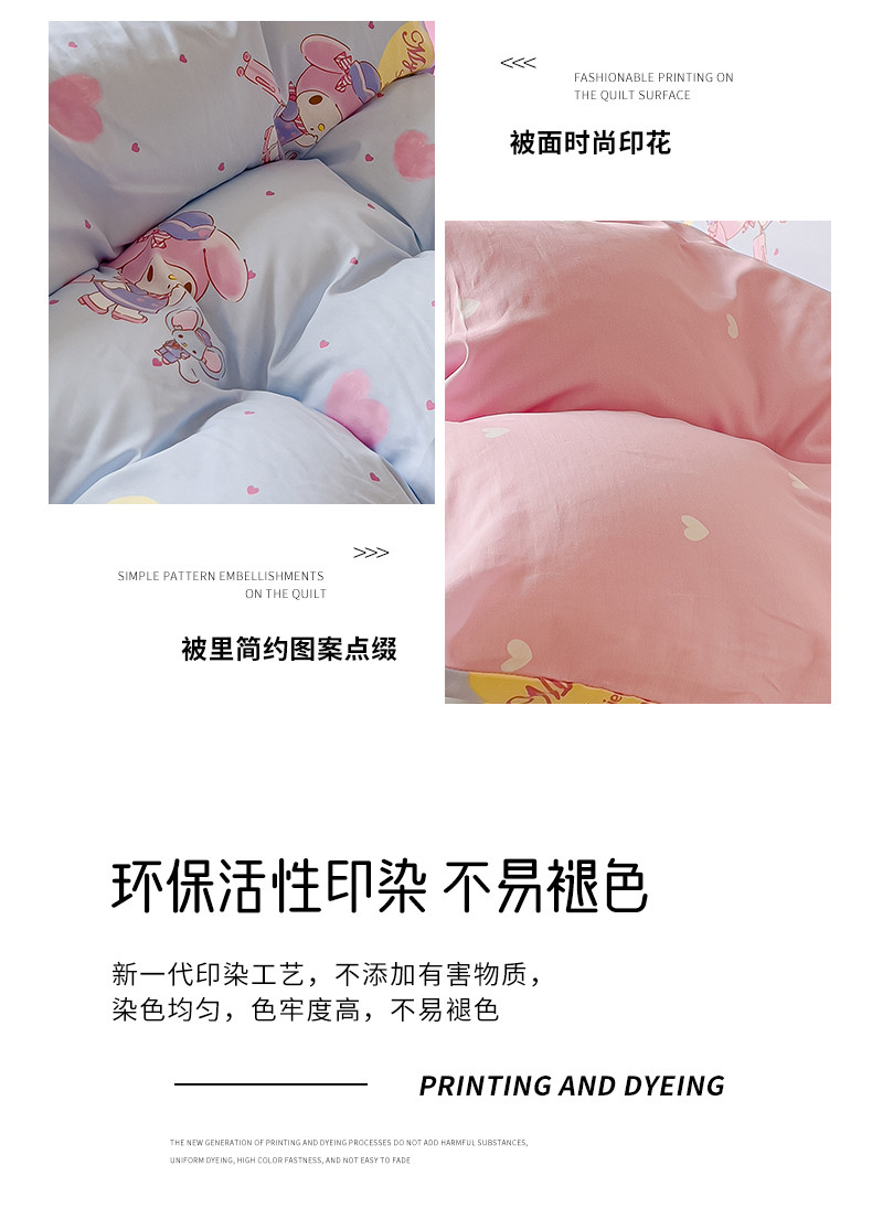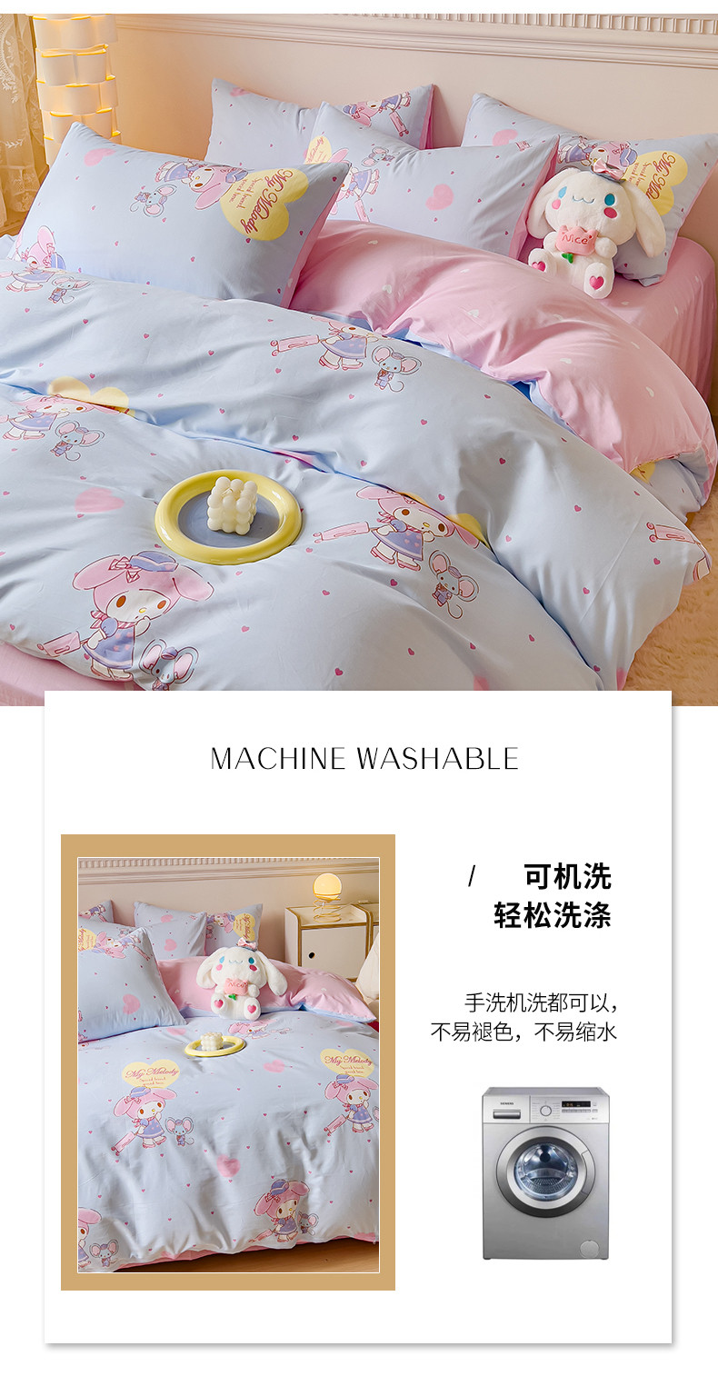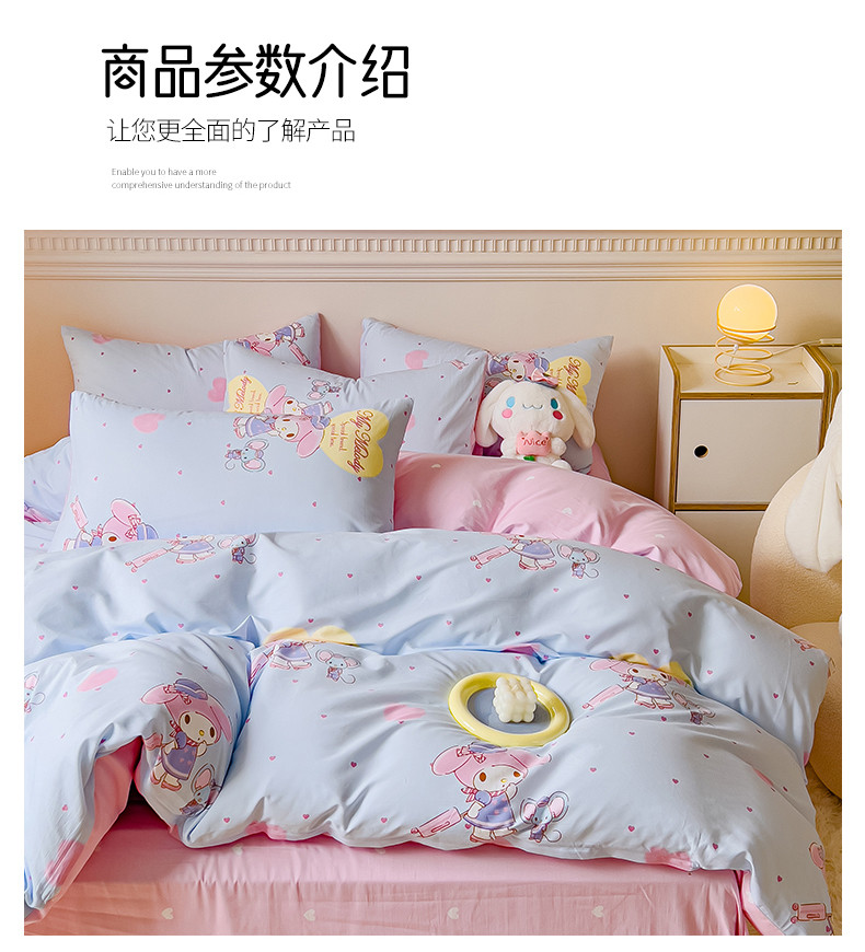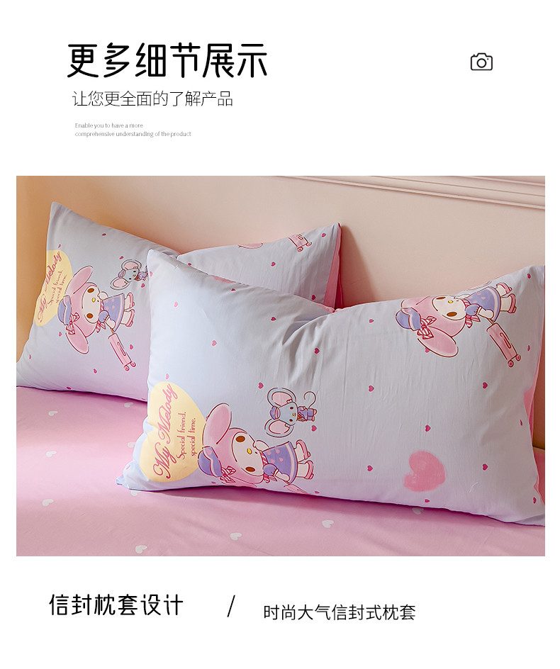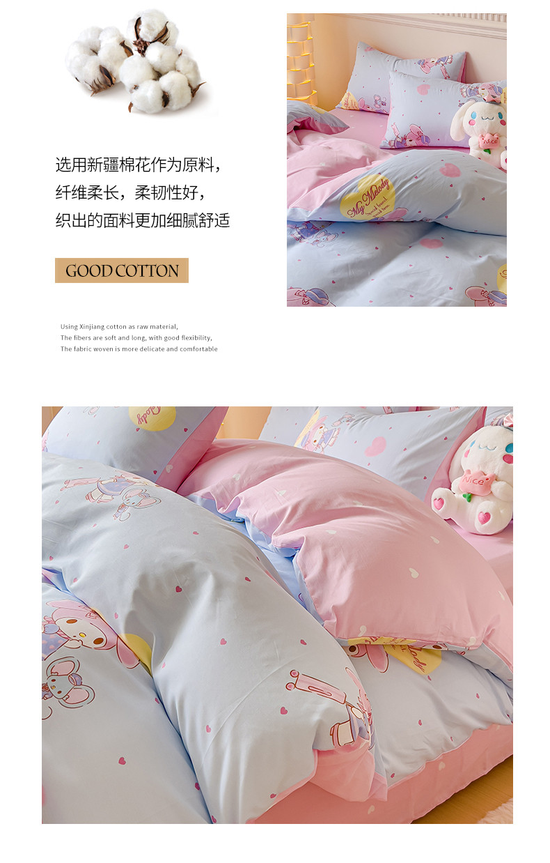 当前位置: 91家纺网 > 商品网购 > 床品套件 > 四件套 > 全棉普通四件套 > 金丝鸟家纺 2023新款全棉印花三利欧库洛米系列四件套 小兔和老鼠