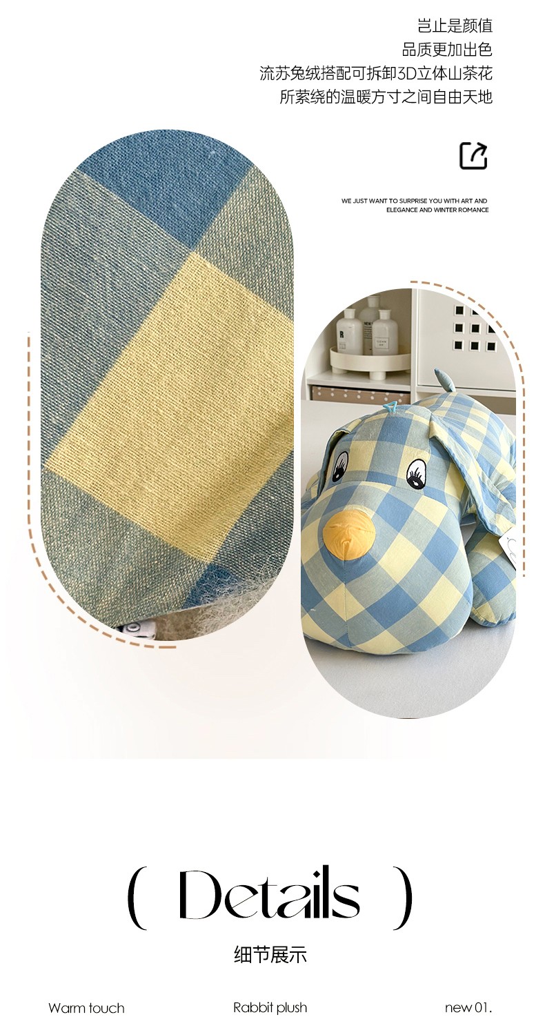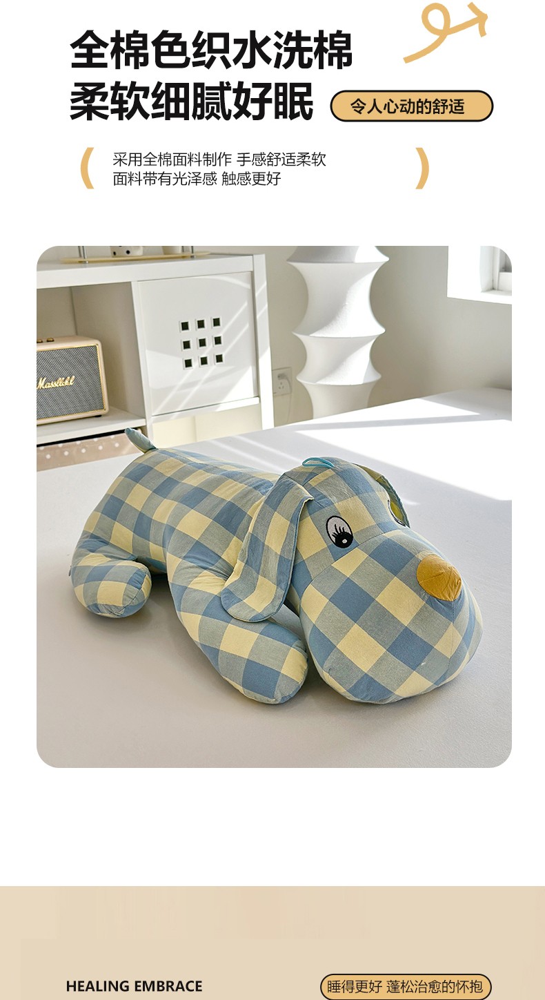 (总)三沁 2023新款直播爆款福利款纯棉色织水洗棉格子升级款小狗抱枕,七彩格,偶遇粉,浅绿黄中格,雅典绿,紫黄中格