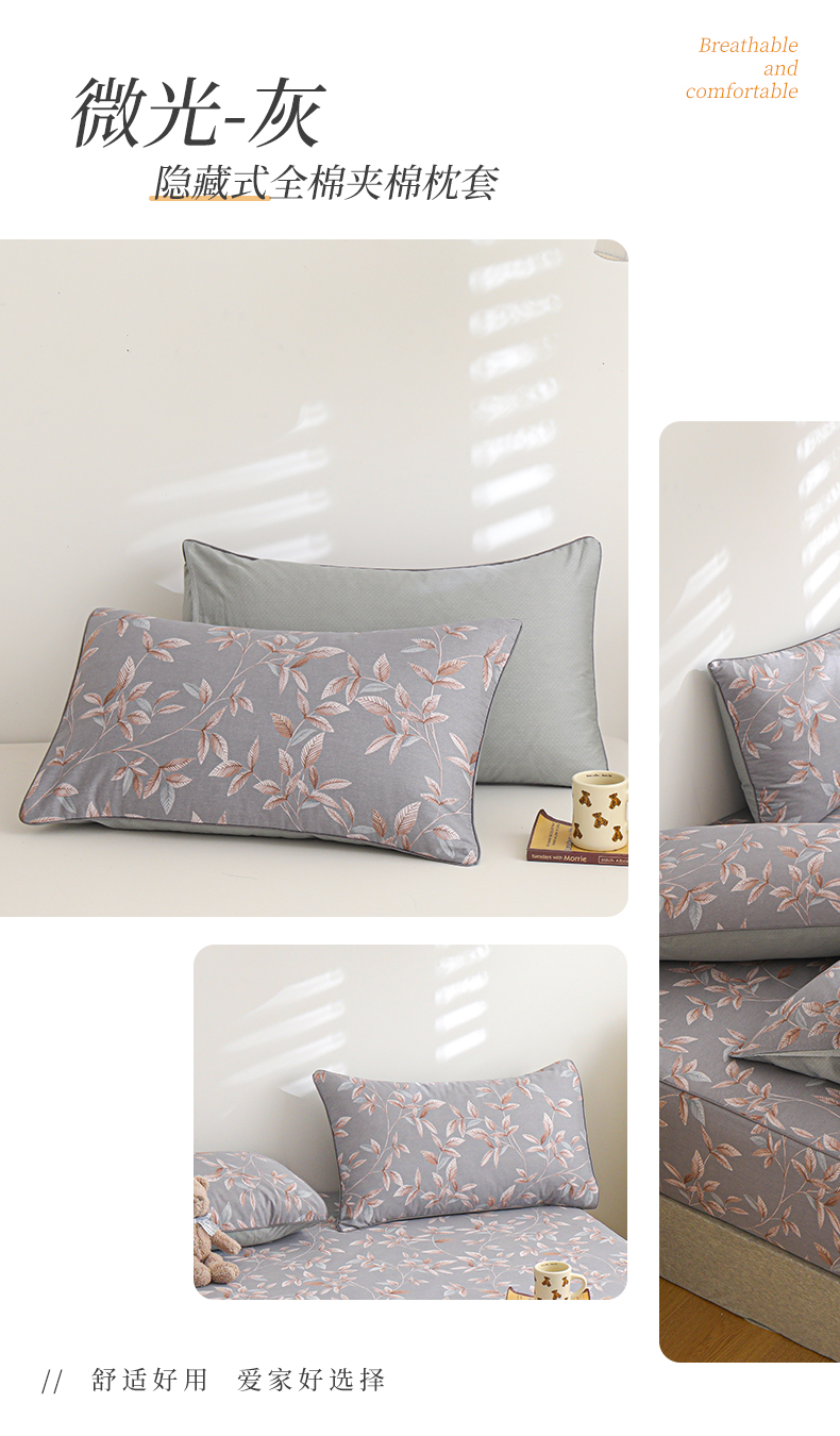 商品名称:元元 2024新款13372加密精梳全棉单品套件系列-单枕套 微光-灰