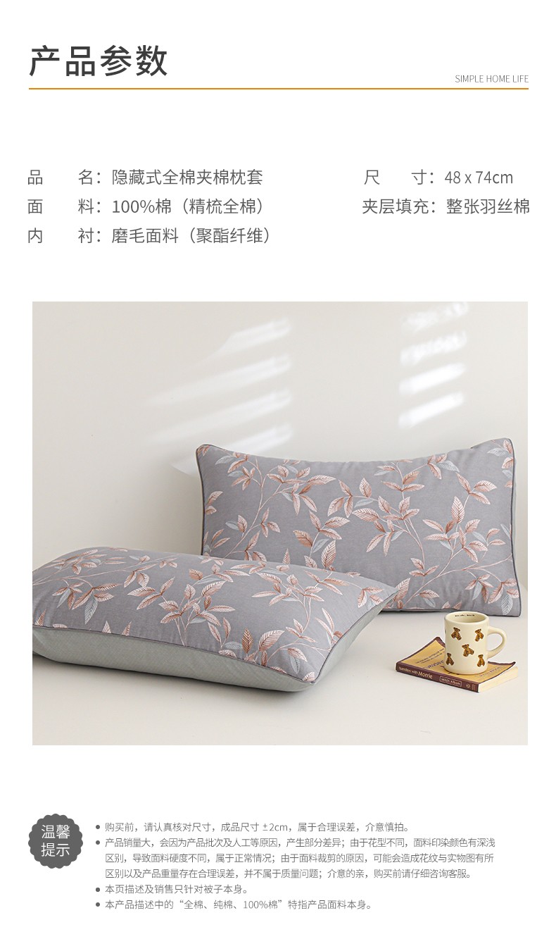 48*74cm夹棉枕套一对