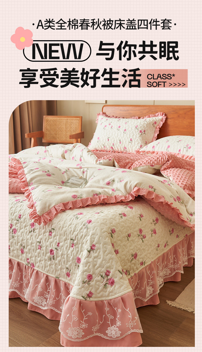 商品名称:恒爱 2023新款全棉春秋被床盖四件套 丝丝花香