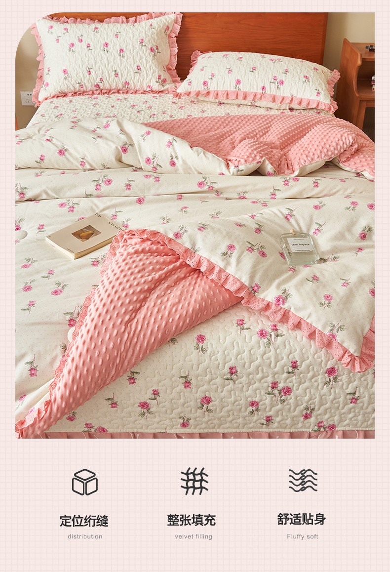 (总)恒爱家纺 2025新款牛奶绒贴布绣夹棉床裙四件套,豆沙红,浪漫紫,天空蓝,温馨粉,象牙白
