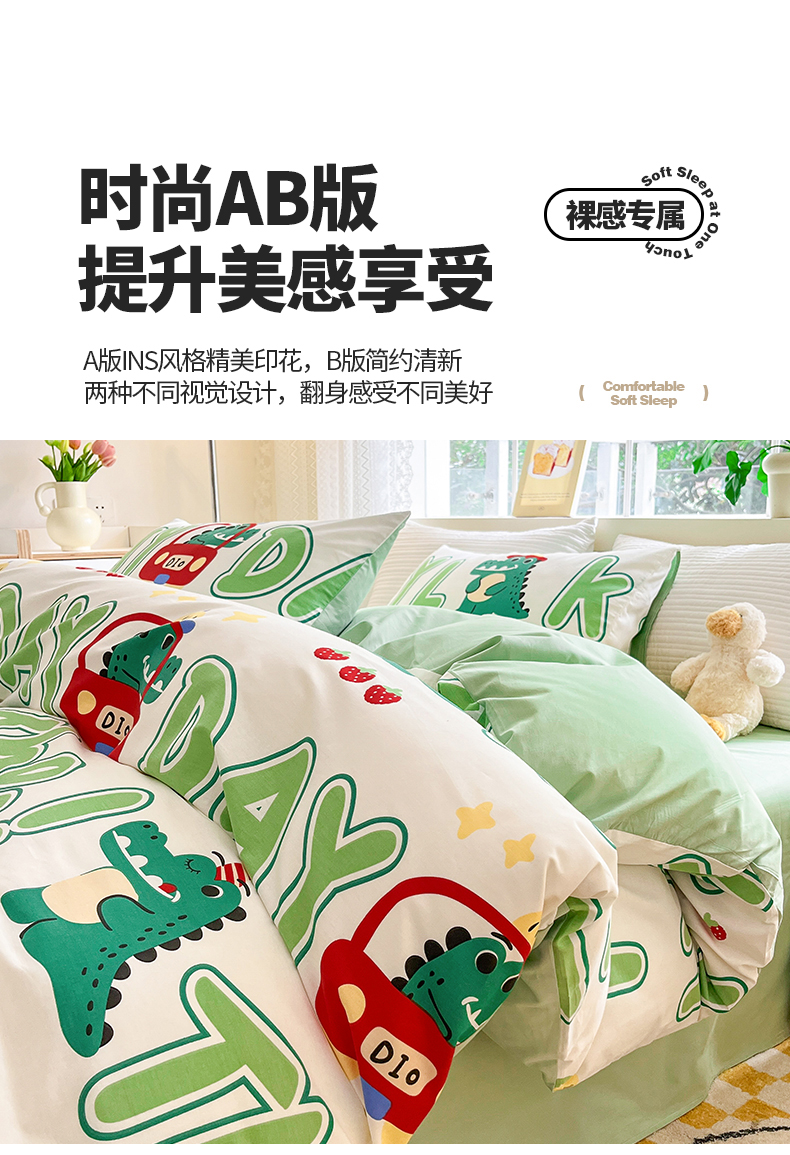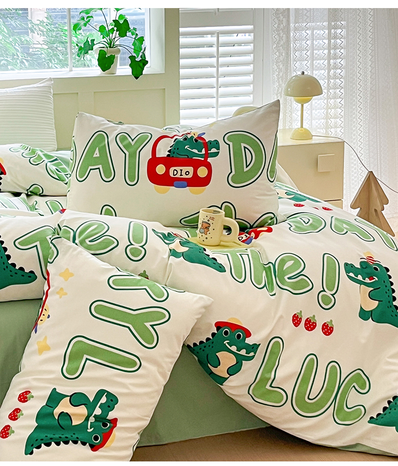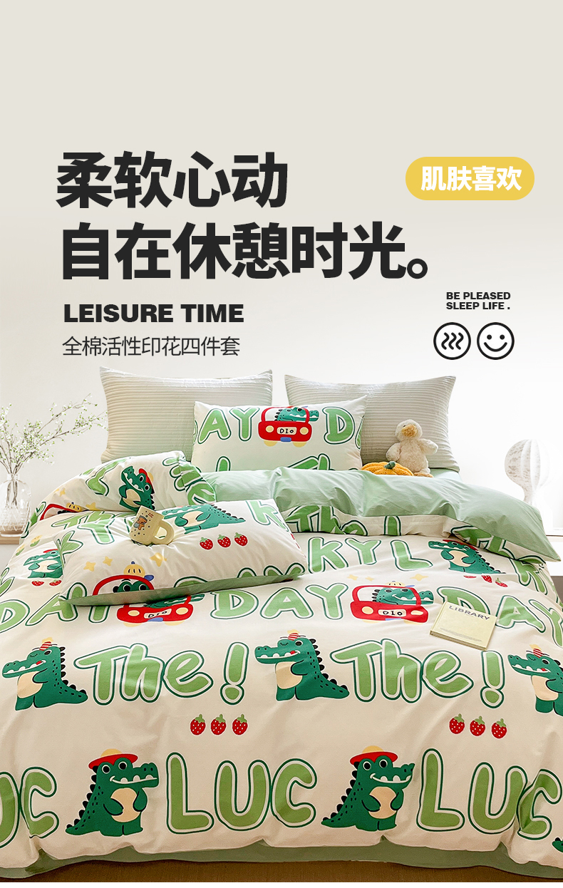 清雅福 2024春夏新品喷气全棉13372印花系列-四件套 小鳄鱼日记
