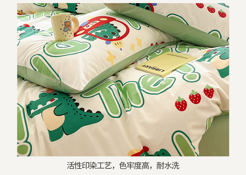 商品名称:清雅福 2024春夏新品喷气全棉13372印花系列-四件套 小鳄鱼日记