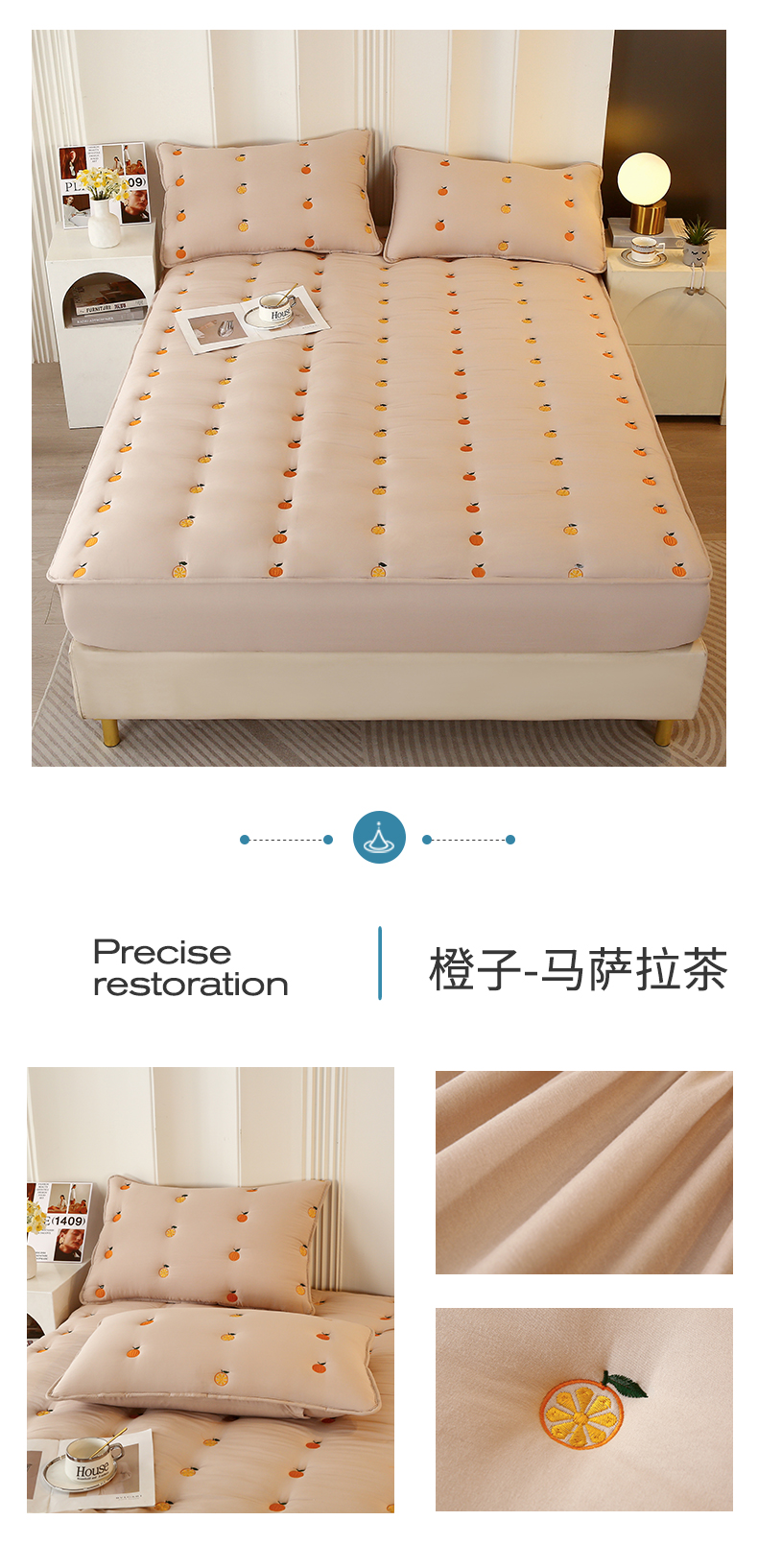 商品名称:(总)贝拉梦家纺 2024直播新款A类刺绣水洗棉床褥式大豆夹棉床笠