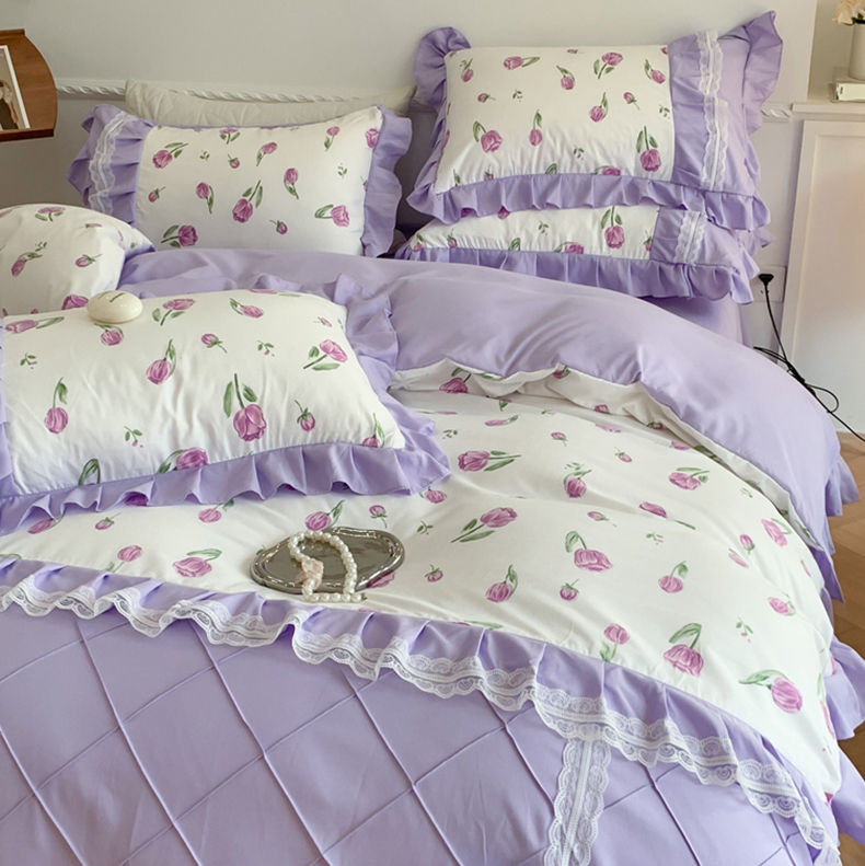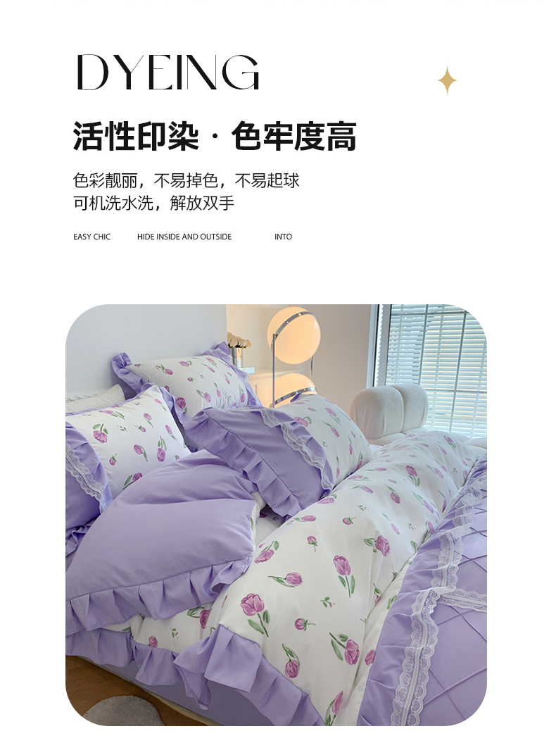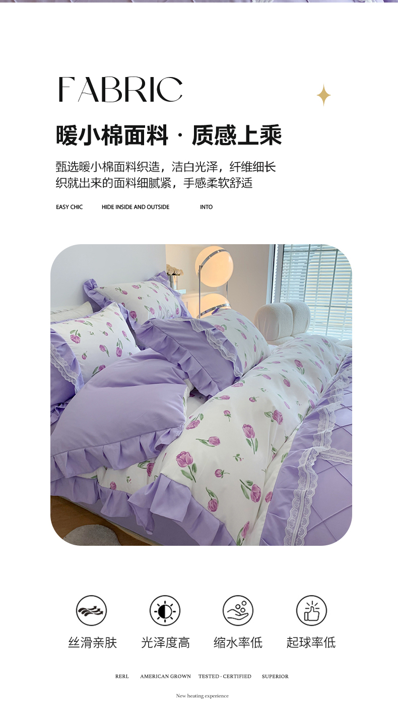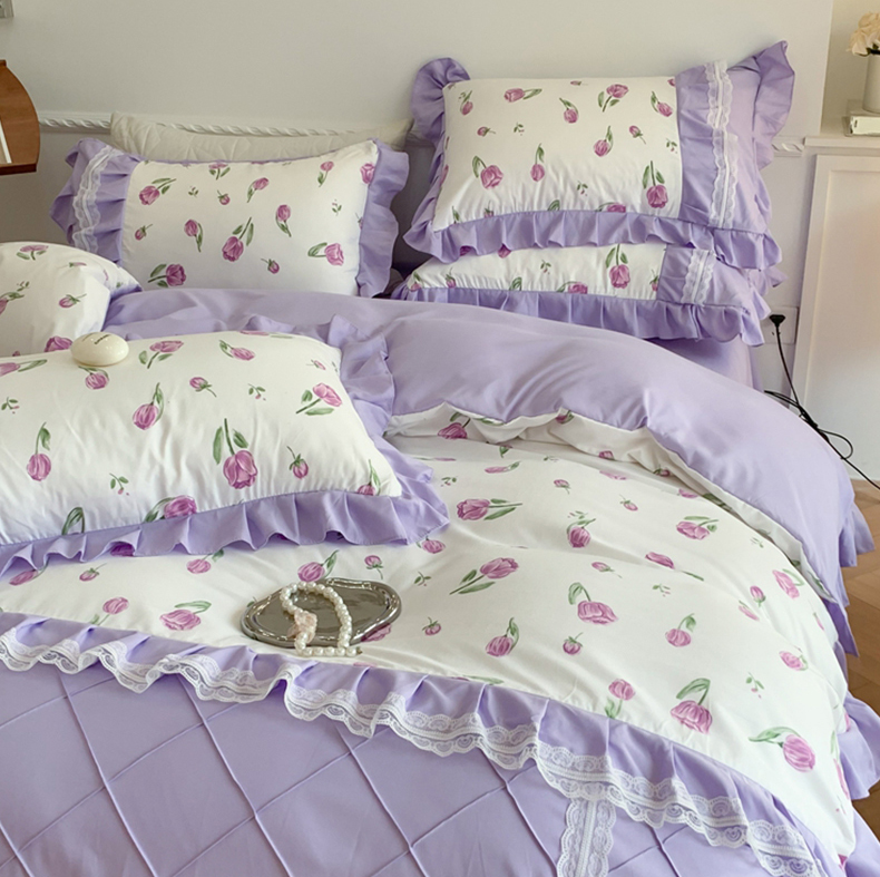 吾欢心 2025新款蝴蝶结款韩版蕾丝花边四件套 紫色郁金香