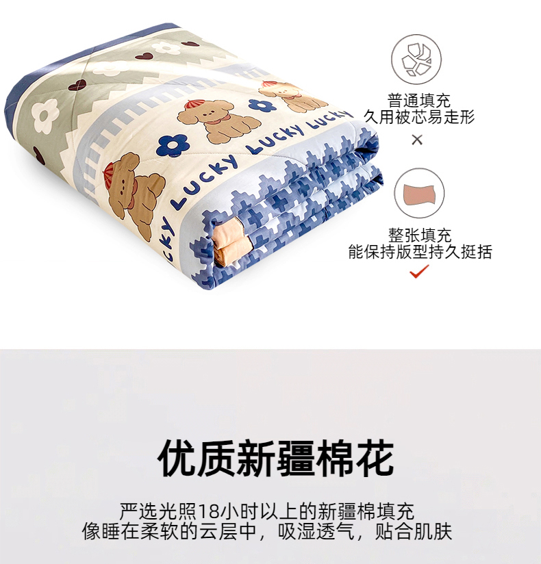 商品名称:鸣升家纺 A类印花全棉12868棉花夏凉被四件套夏被 幸运日