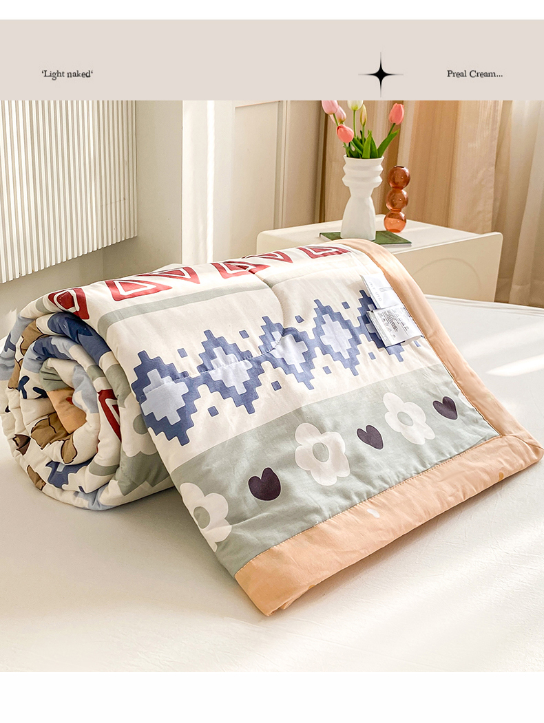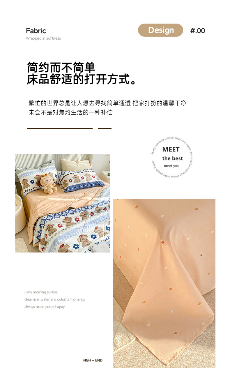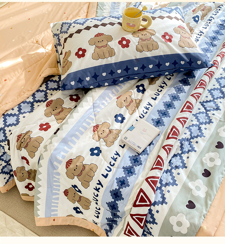 鸣升家纺 A类印花全棉12868棉花夏凉被四件套夏被 幸运日