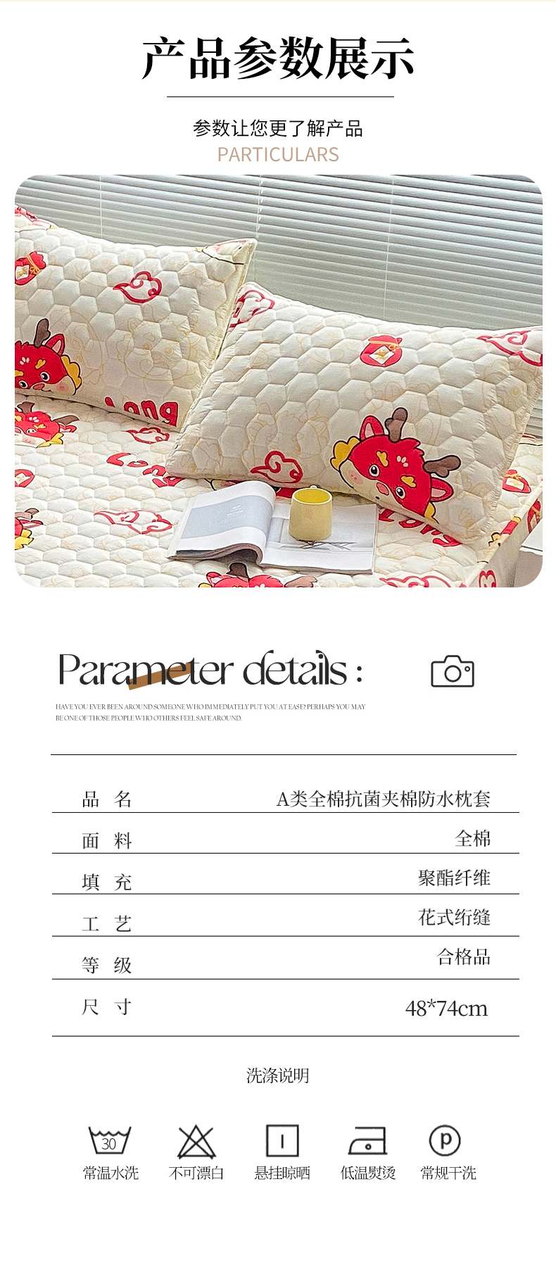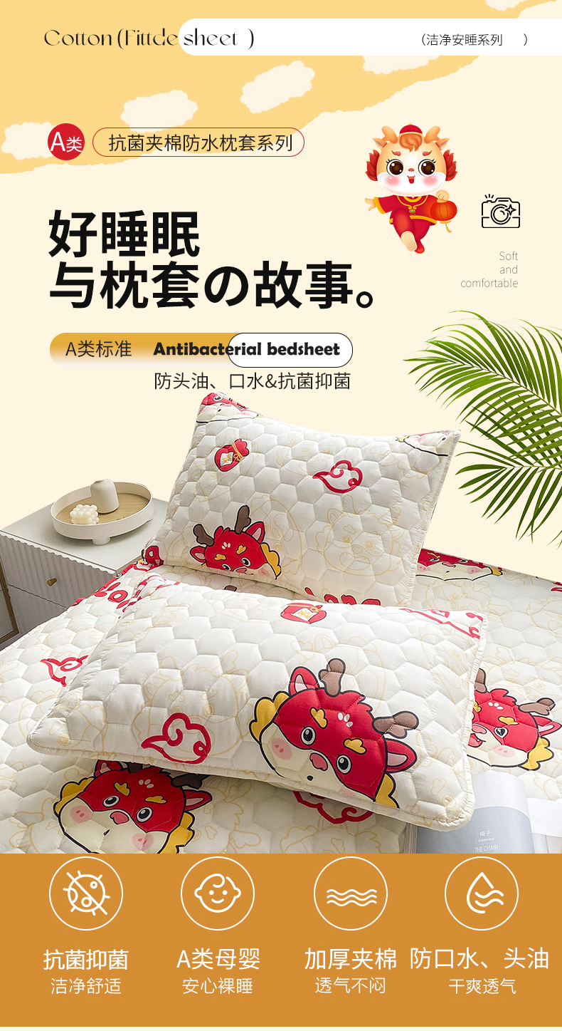 商品名称: 九亭家纺 2024新款全棉夹棉防口水防头油枕套 防水-吉祥龙