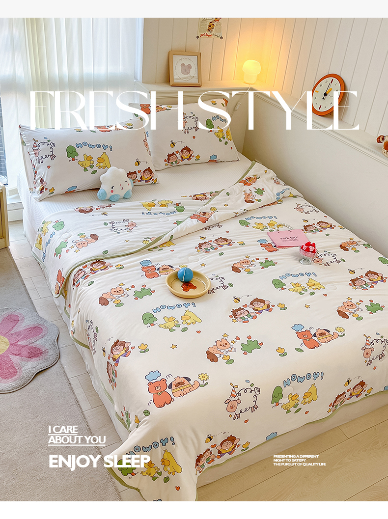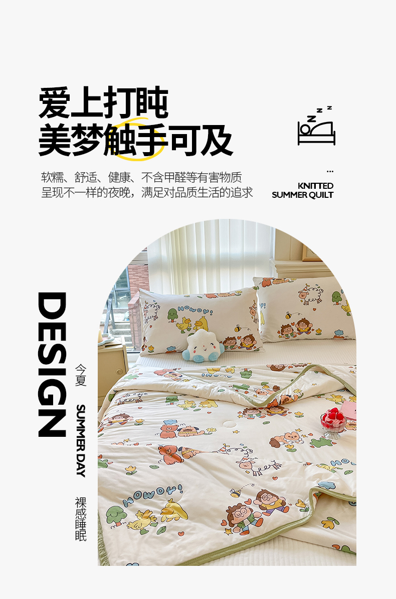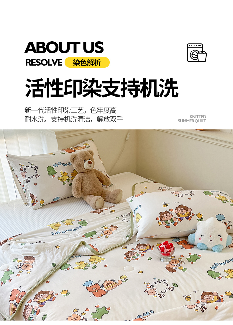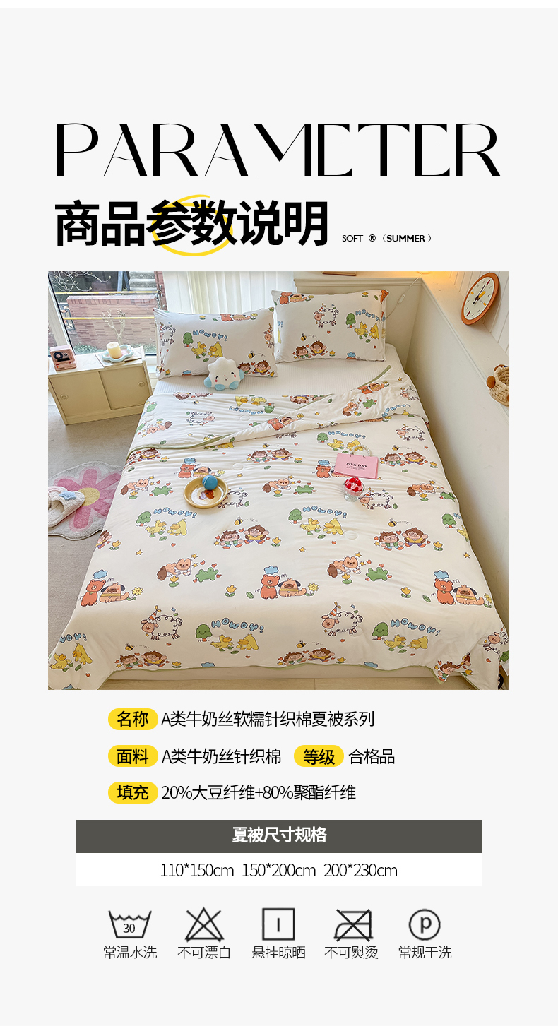 商品名称:桃子家居 2024新款A类高品质牛奶丝软糯针织棉夏被 针织棉-童年伙伴