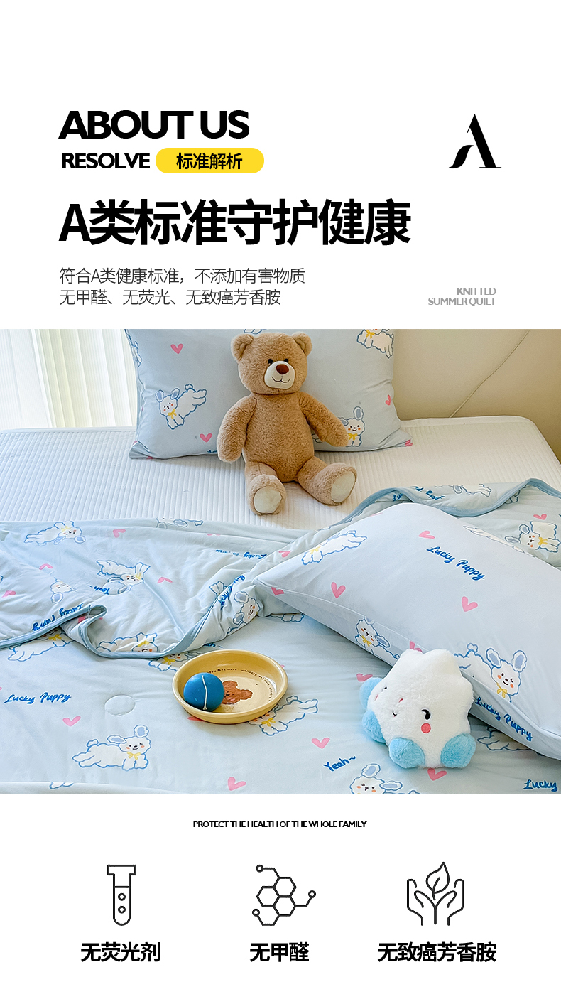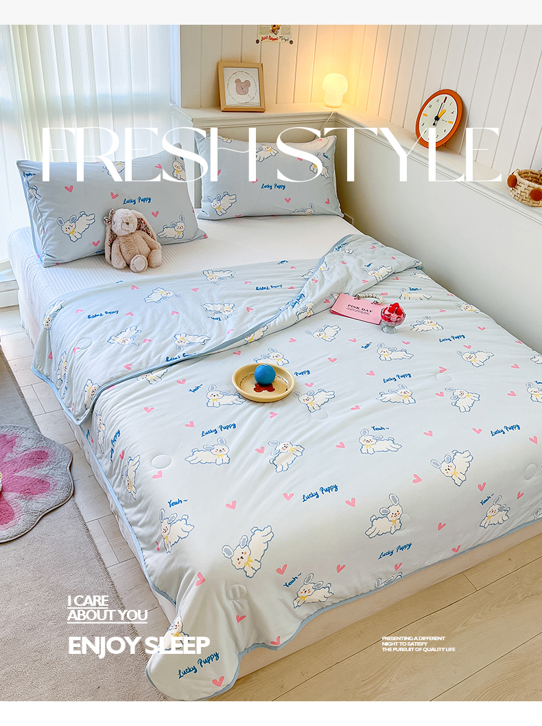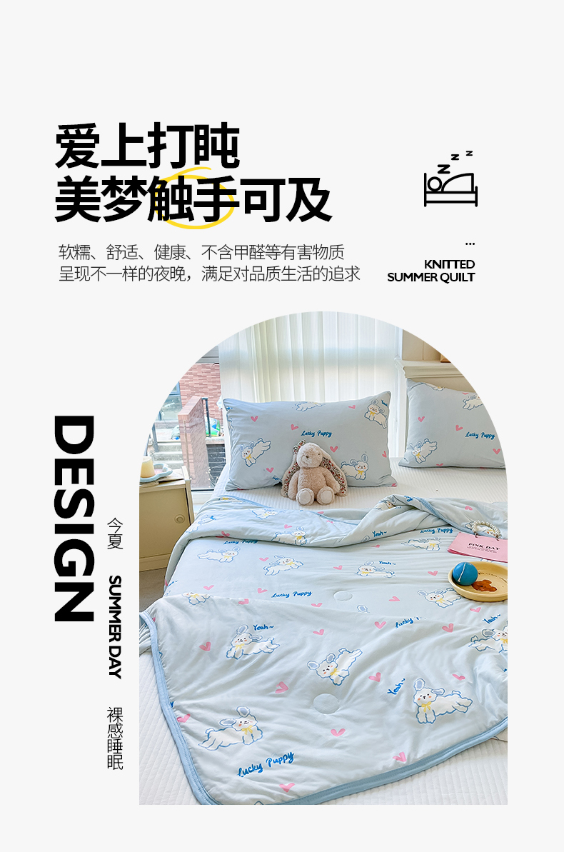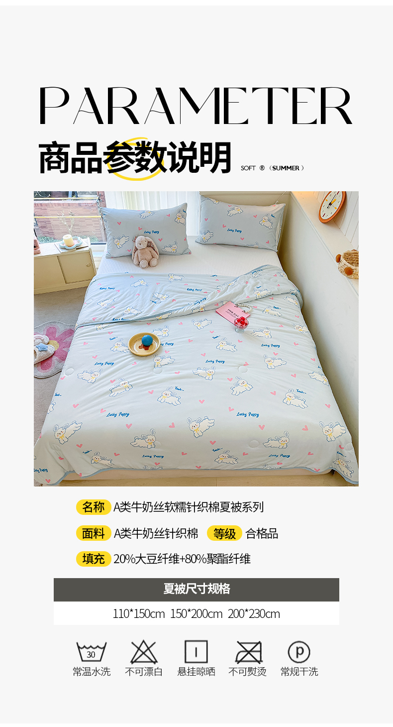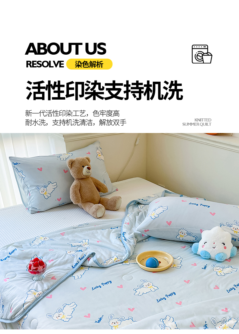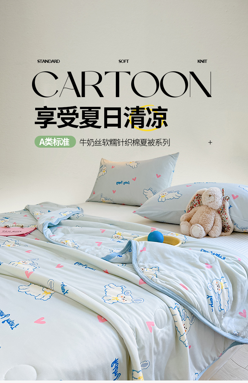 商品名称:桃子家居 2024新款A类高品质牛奶丝软糯针织棉夏被 针织棉-耶耶狗
