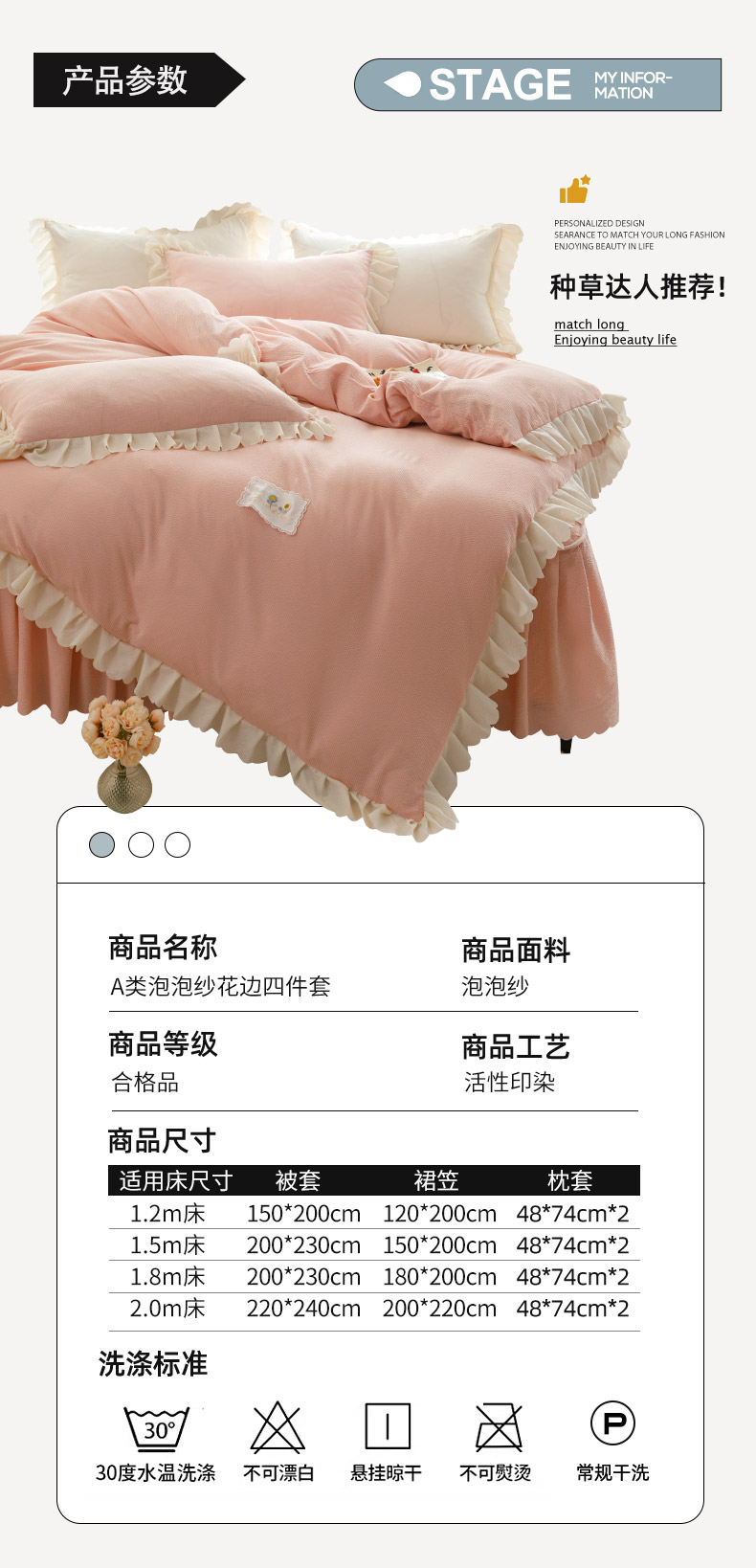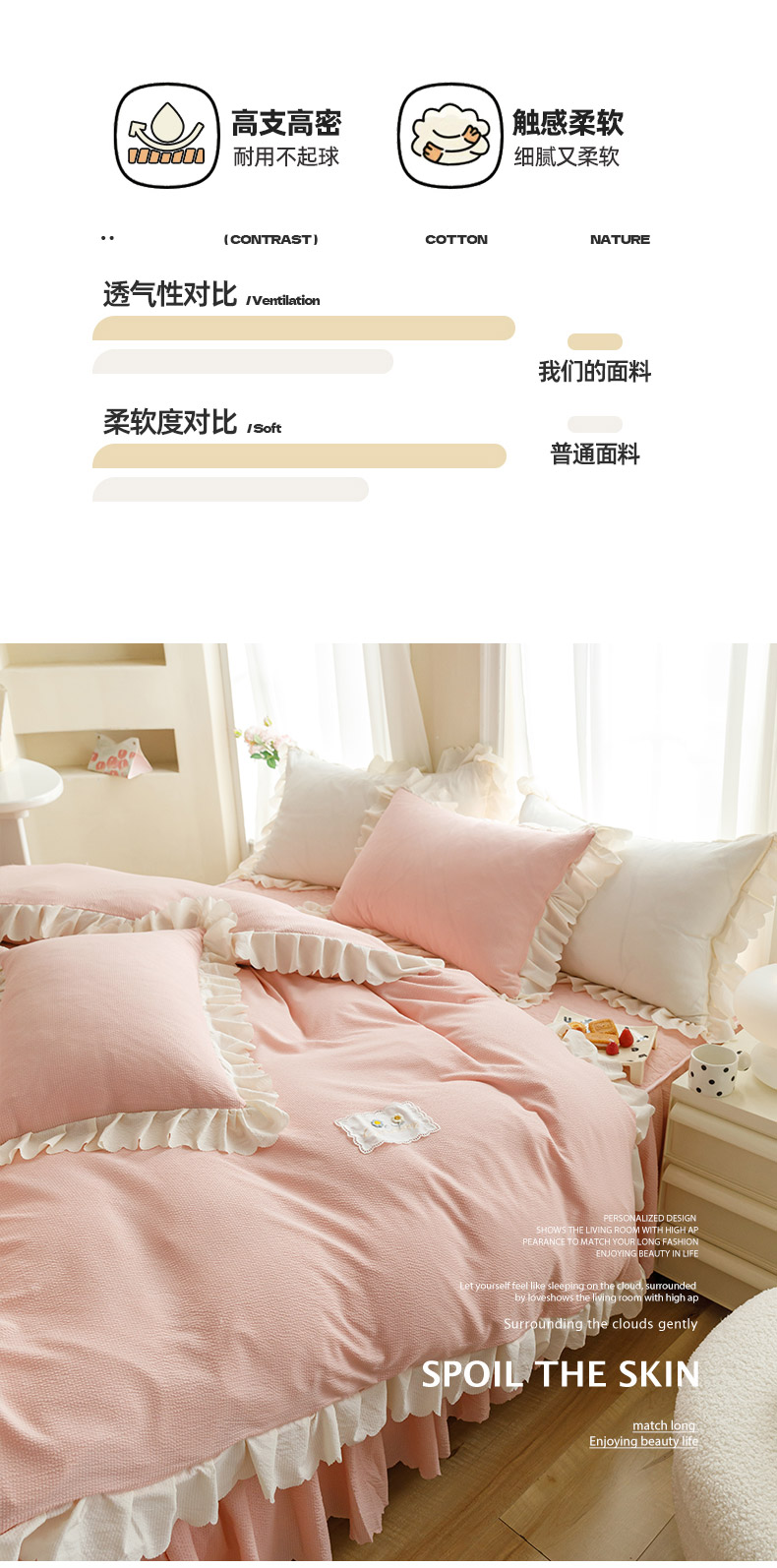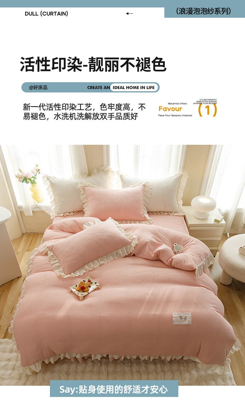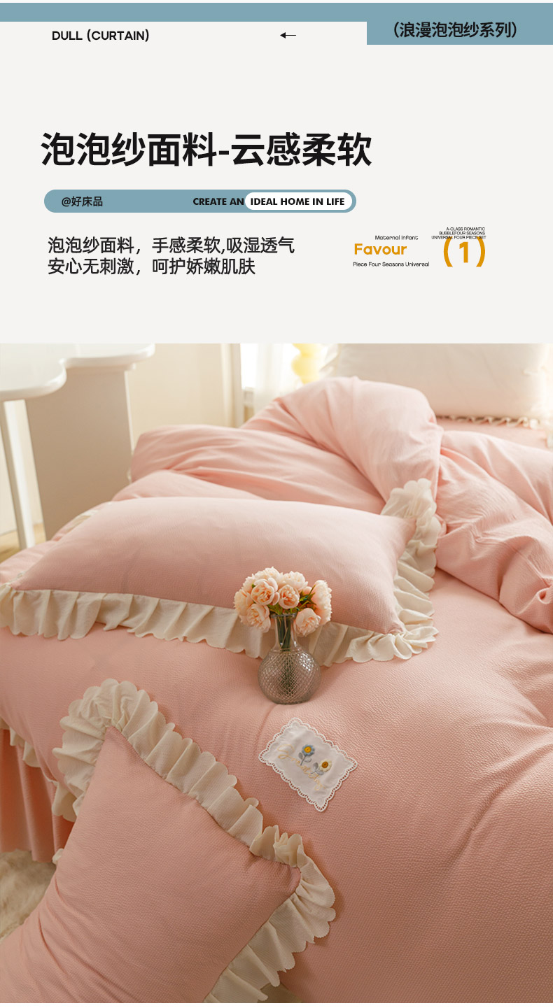 商品名称:(总)丝印良品 2025新款四季款夹棉泡泡纱床裙床笠被套四件套