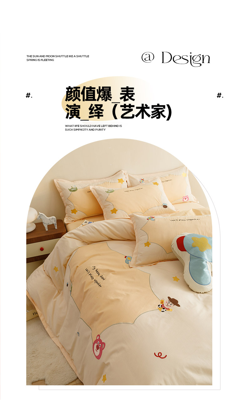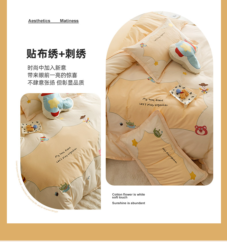 商品名称:丝印良品 2024新款全棉床笠绣花卡通刺绣四件套巴斯光年系列 巴斯光年-香槟