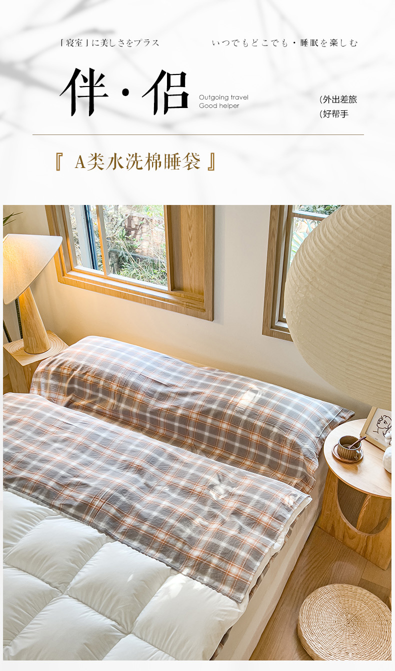 暖阳 2025新款A类无印风水洗棉睡袋 睡袋-曼特斯咖格
