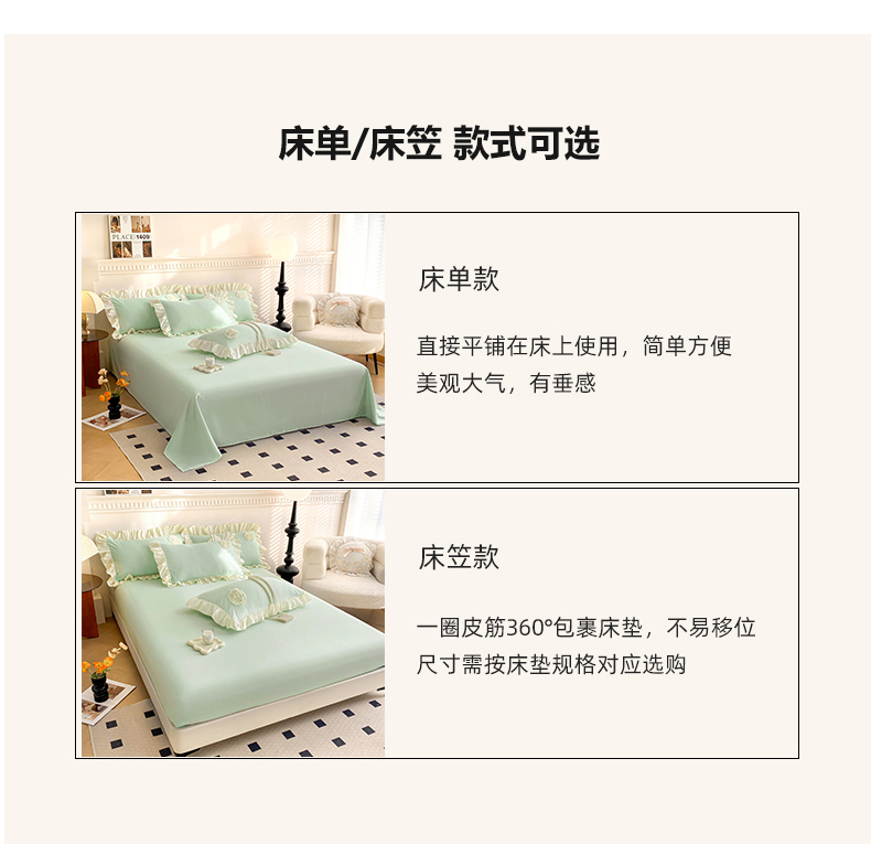 (总)富盛 2024新款水洗亲肤棉刺绣公主风四件套-春暖花开,浅绿+深绿,紫黄,浅绿,粉玉,白粉,粉绿,黄蓝,大红