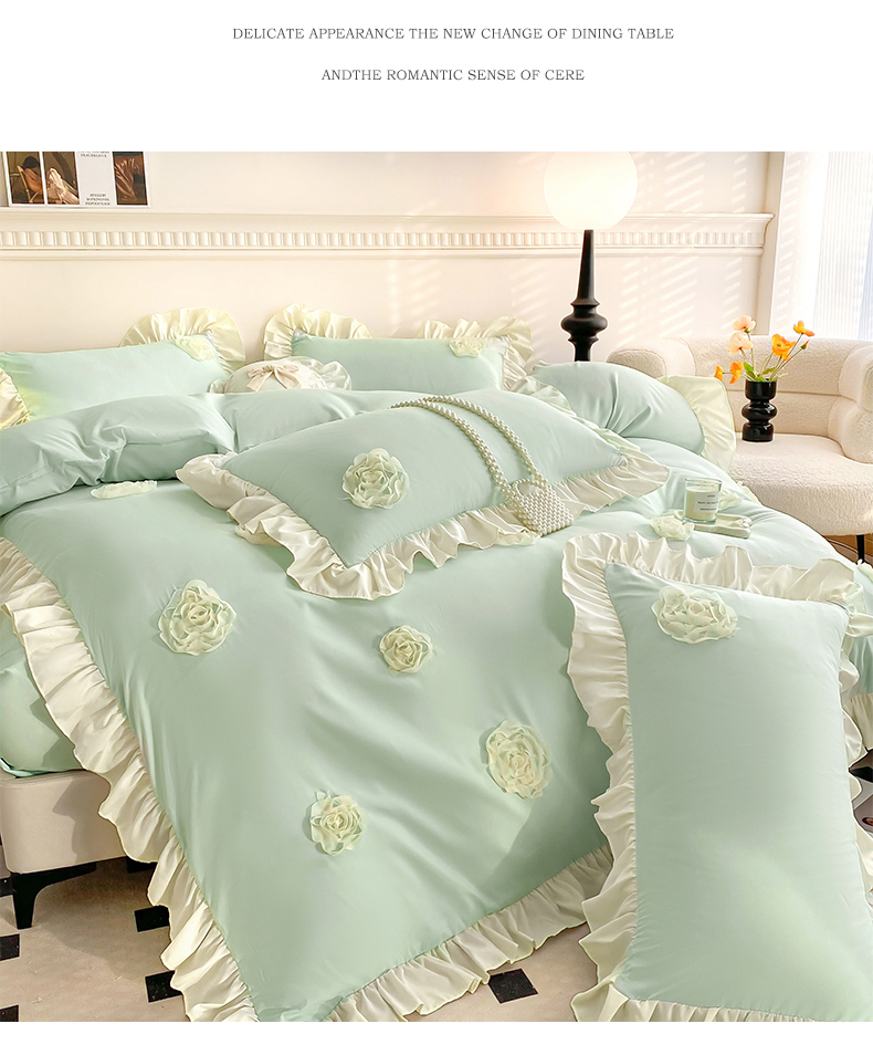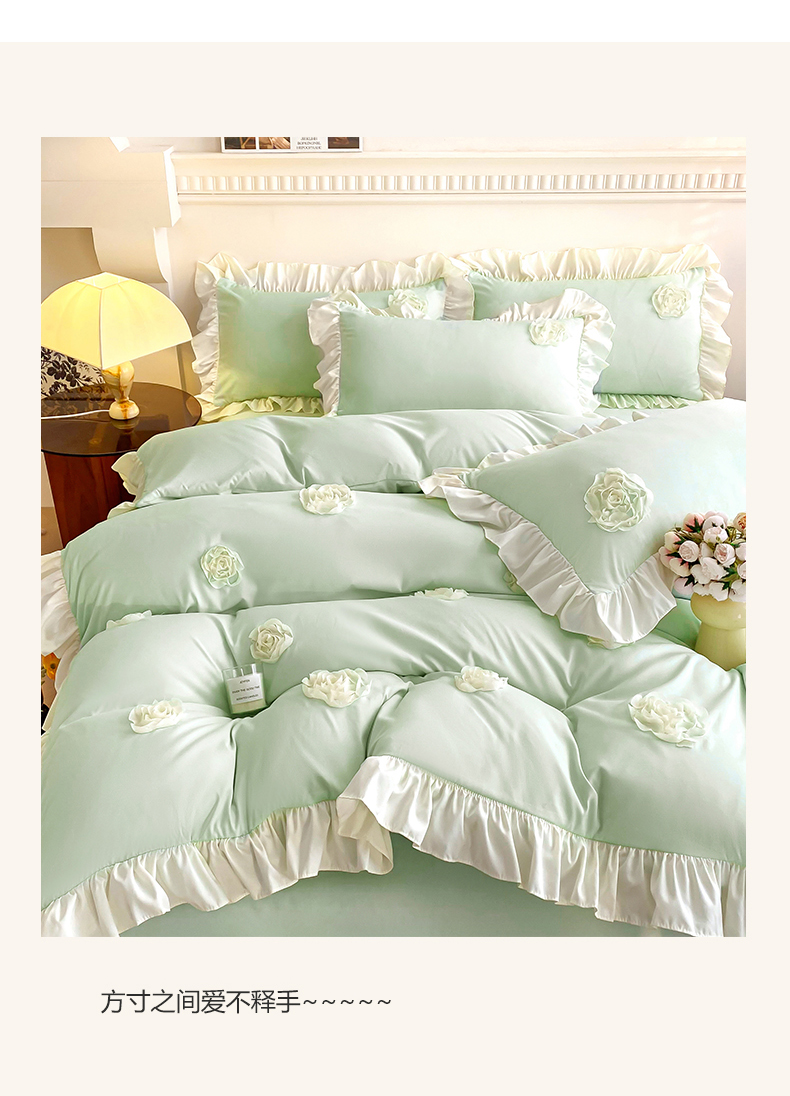 水洗亲肤棉立体刺绣四件套公主风四件套 百花齐放-浅绿