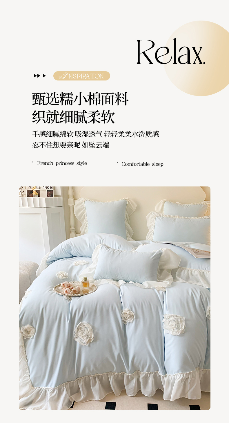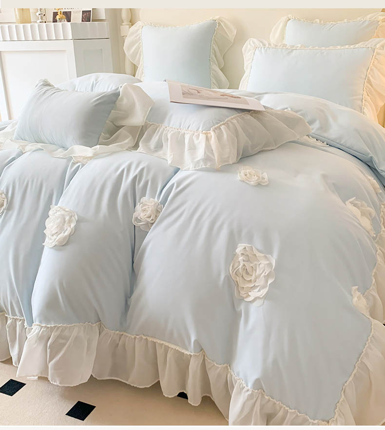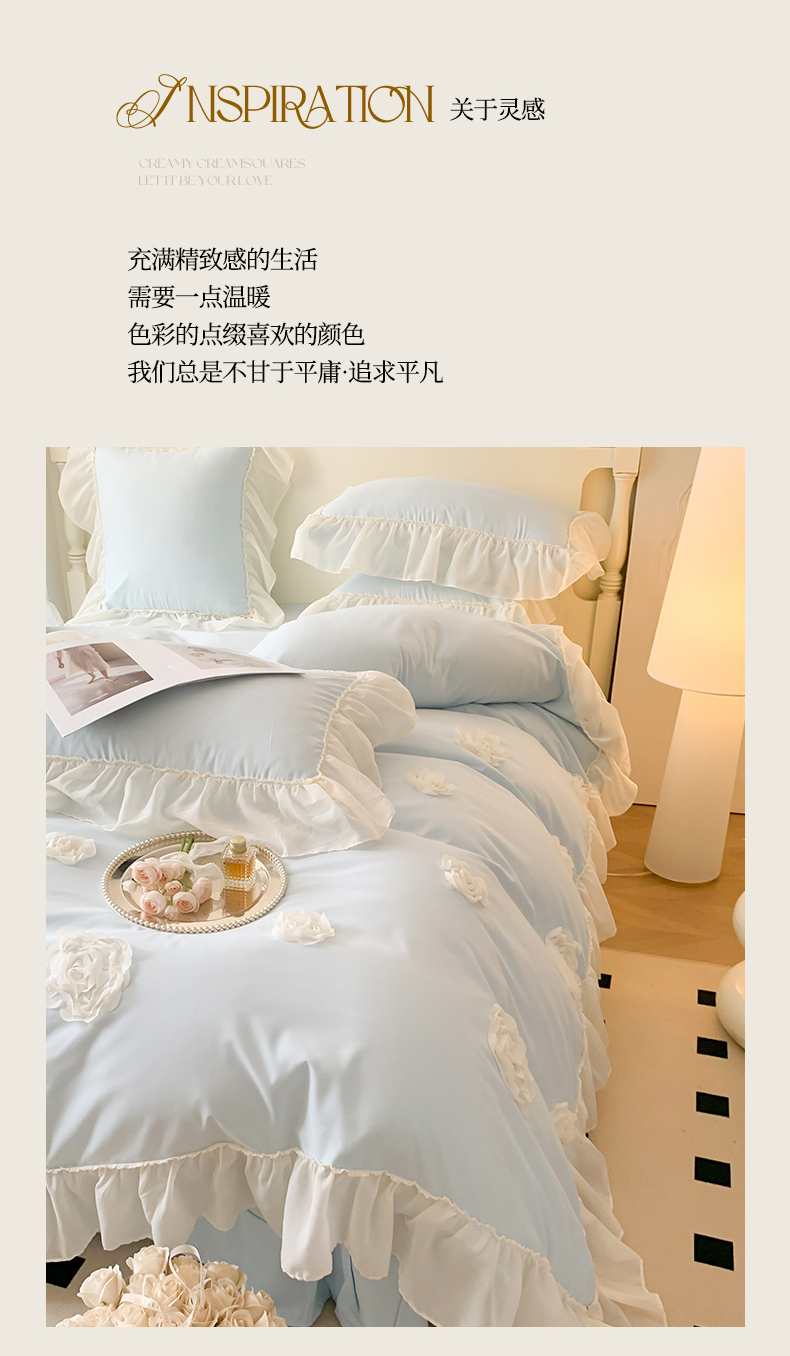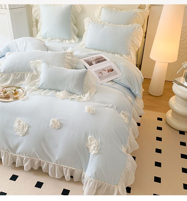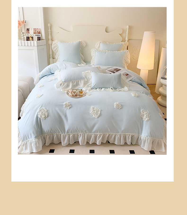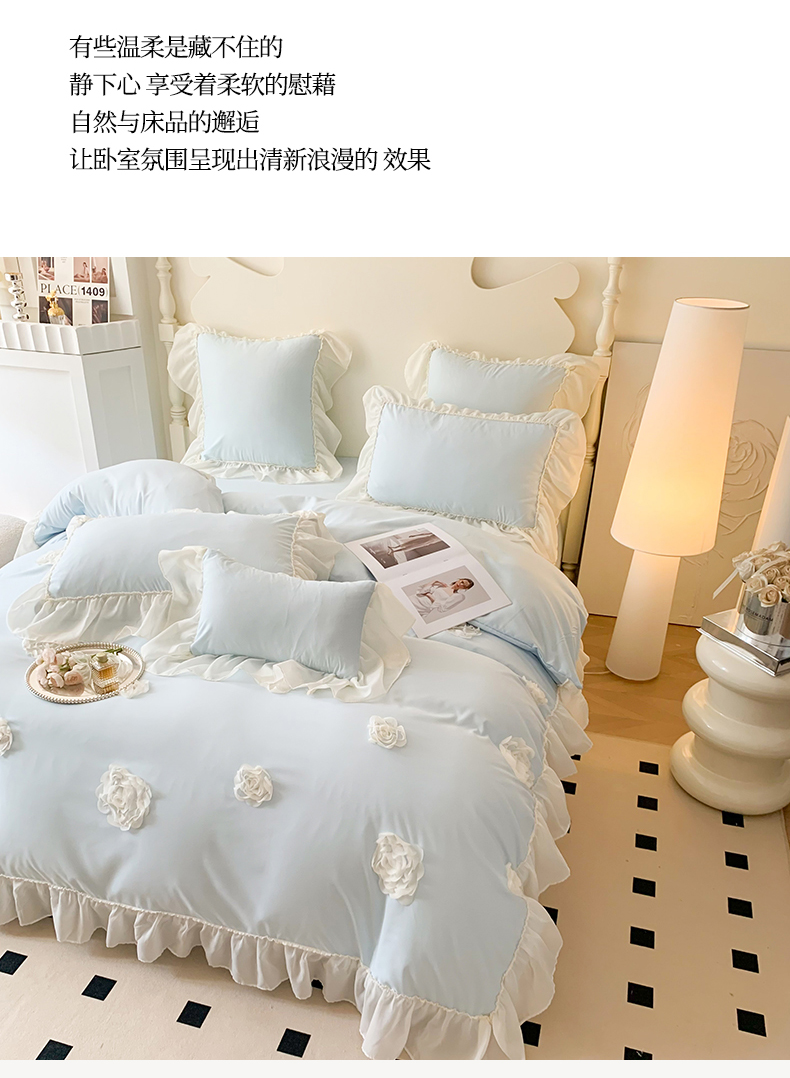 商品名称:吾欢心 2025新款糯小棉四件套-伊莉莎 伊莉莎蓝