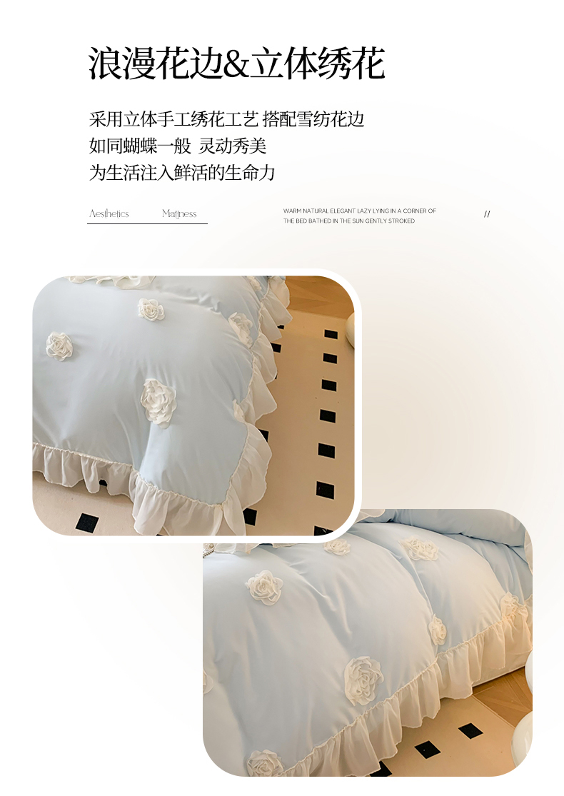 (总)吾欢心 2025新款公主风雪纺边四季通用夹棉床盖,床盖白,床盖粉,床盖黄,床盖咖,床盖绿,床盖抹茶绿,床盖紫